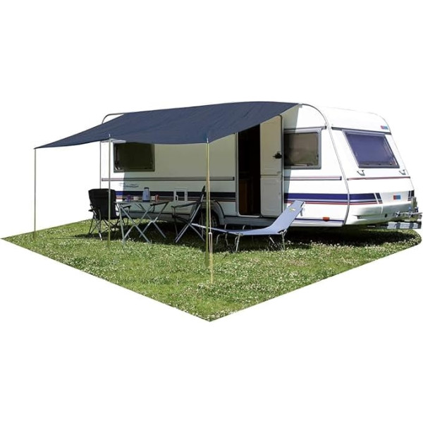 Quick and easy to install. Weatherproof, lightweight, durable. Steel rod, 19/22 mm diameter, fully adjustable. Material: All Weather Tex 1.7, Colour: Grey or Navy Dimensions: 250 x 240 cm. › See more product details; Product description Product description The sun canopy can be easily and quickly retracted into a caravan piping strip. It offers many uses for travel and camping. (Sun and rain protection, garage, device protection). The sun canopy is made of weather-resistant material, very light and tear-resistant. The seams are of course padded and the eyelets are reinforced. The scope of delivery includes the sun canopy, 2 pitching poles (infinitely height-adjustable) and guy material (straps, pegs). Material: All Weather Tex 1.7 – Colour: Grey or Navy – Steel poles 19/22 mm diameter, easy to clean – Dimensions: 250 cm x 240 cm. Safety Warning Caution: Make sure the sun canopy is properly mounted and anchored to minimize the risk of injury or damage from wind. Use the pitching poles with care to avoid the risk of bruising or injury.; Product description Product description The sun canopy can be easily and quickly retracted into a caravan piping strip. It offers many uses for travel and camping. (Sun and rain protection, garage, device protection). The sun canopy is made of weather-resistant material, very light and tear-resistant. The seams are of course padded and the eyelets are reinforced. The scope of delivery includes the sun canopy, 2 pitching poles (infinitely height-adjustable) and guy material (straps, pegs). Material: All Weather Tex 1.7 – Colour: Grey or Navy – Steel poles 19/22 mm diameter, easy to clean – Dimensions: 250 cm x 240 cm. Safety Warning Caution: Make sure the sun canopy is properly mounted and anchored to minimize the risk of injury or damage from wind. Use the pitching poles with care to avoid the risk of bruising or injury.; Product description The sun canopy can be easily and quickly retracted into a caravan piping strip. It offers many uses for travel and camping. (Sun and rain protection, garage, device protection). The sun canopy is made of weather-resistant material, very light and tear-resistant. The seams are of course padded and the eyelets are reinforced. The scope of delivery includes the sun canopy, 2 pitching poles (infinitely height-adjustable) and guy material (straps, pegs). Material: All Weather Tex 1.7 – Colour: Grey or Navy – Steel poles 19/22 mm diameter, easy to clean – Dimensions: 250 cm x 240 cm. Safety Warning Caution: Make sure the sun canopy is properly mounted and anchored to minimize the risk of injury or damage from wind. Use the pitching poles with care to avoid the risk of bruising or injury.