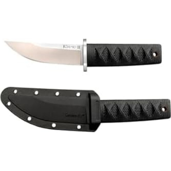 DURABLE AND COMPACT The Kyoto II knife features a sturdy, sturdy drop point blade, ideal for hunting tasks such as skinning and removal. Its wide, curved edge ensures precision and lightness, while the full tang construction provides superior strength DURABLE STEEL - Made of 8CR13MOV stainless steel, this blade strikes the perfect balance of hardness and corrosion resistance. The robust composition of this steel ensures that the blade retains its sharp edge even after prolonged use, ideal for demanding tasks KRAY-EX HANDLE The Kyoto II knife is designed with a high traction Kray-Ex handle that provides a secure and comfortable grip; Designed to resemble the traditional handles of Japanese swords, this design combines classic aesthetics with modern functionality THOUGHTFUL DESIGN - The slim, versatile sheath included with the Kyoto II outdoor knife provides space for multiple carrying options. It can be equipped with a beaded chain lanyard or a Cold Steel C clip, which allows comfortable and safe wearing in a variety of ways Specifications Weight:90.7g;Blade Thickness:3mm;Handle Length/Material:3 3/8\; Product description COLD STEEL Kyoto II drop point knife (CS-17DB): The Cold Steel Kyoto II knife is a masterful blend of strength, functionality and thoughtful design, tailored for hunters and outdoor enthusiasts. Featuring a rugged drop point blade with a wide, curved edge, it excels in precision tasks such as skinning and removing while ensuring superior durability through its full-tang construction. Made of 8CR13MOV stainless steel, the blade balances hardness and corrosion resistance, and maintains its sharp edge even in demanding conditions. Equipped with a high-traction Kray-Ex handle designed after traditional Japanese sword handles, the Kyoto II delivers a secure and comfortable grip, combining classic aesthetics with modern practicality. The knife includes a sleek, versatile sheath that supports multiple carrying options, from a beaded chain lanyard to a Cold Steel C clip, ensuring comfort and accessibility in any situation. Weighing only 90g with a 3mm thick blade, a handle length of 9.5cm and an overall length of 17.5cm, this fixed blade knife is compact yet powerful, ready to tackle any outdoor challenge.; Product description COLD STEEL Kyoto II drop point knife (CS-17DB): The Cold Steel Kyoto II knife is a masterful blend of strength, functionality and thoughtful design, tailored for hunters and outdoor enthusiasts. Featuring a rugged drop point blade with a wide, curved edge, it excels in precision tasks such as skinning and removing while ensuring superior durability through its full-tang construction. Made of 8CR13MOV stainless steel, the blade balances hardness and corrosion resistance, and maintains its sharp edge even in demanding conditions. Equipped with a high-traction Kray-Ex handle designed after traditional Japanese sword handles, the Kyoto II delivers a secure and comfortable grip, combining classic aesthetics with modern practicality. The knife includes a sleek, versatile sheath that supports multiple carrying options, from a beaded chain lanyard to a Cold Steel C clip, ensuring comfort and accessibility in any situation. Weighing only 90g with a 3mm thick blade, a handle length of 9.5cm and an overall length of 17.5cm, this fixed blade knife is compact yet powerful, ready to tackle any outdoor challenge.; COLD STEEL Kyoto II drop point knife (CS-17DB): The Cold Steel Kyoto II knife is a masterful blend of strength, functionality and thoughtful design, tailored for hunters and outdoor enthusiasts. Featuring a rugged drop point blade with a wide, curved edge, it excels in precision tasks such as skinning and removing while ensuring superior durability through its full-tang construction. Made of 8CR13MOV stainless steel, the blade balances hardness and corrosion resistance, and maintains its sharp edge even in demanding conditions. Equipped with a high-traction Kray-Ex handle designed after traditional Japanese sword handles, the Kyoto II delivers a secure and comfortable grip, combining classic aesthetics with modern practicality. The knife includes a sleek, versatile sheath that supports multiple carrying options, from a beaded chain lanyard to a Cold Steel C clip, ensuring comfort and accessibility in any situation. Weighing only 90g with a 3mm thick blade, a handle length of 9.5cm and an overall length of 17.5cm, this fixed blade knife is compact yet powerful, ready to tackle any outdoor challenge.