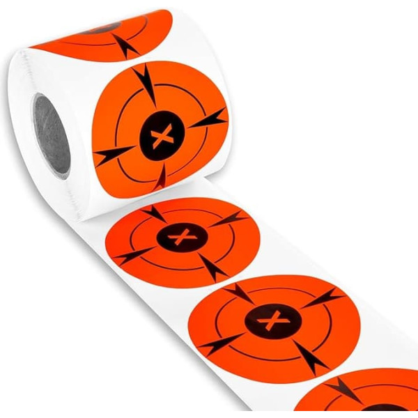 Highwild Pack of 250 3 inch fluorescent orange bullseye self-adhesive target stickers - suitable for handguns, rifles, BB pistols, airsoft, pellet guns