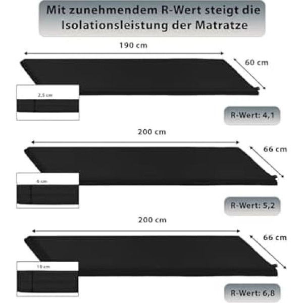 ALPIDEX Self-Inflating Outdoor Thermal Mat in Various Sizes and Colours, 200 x 66 x 6.0 cm