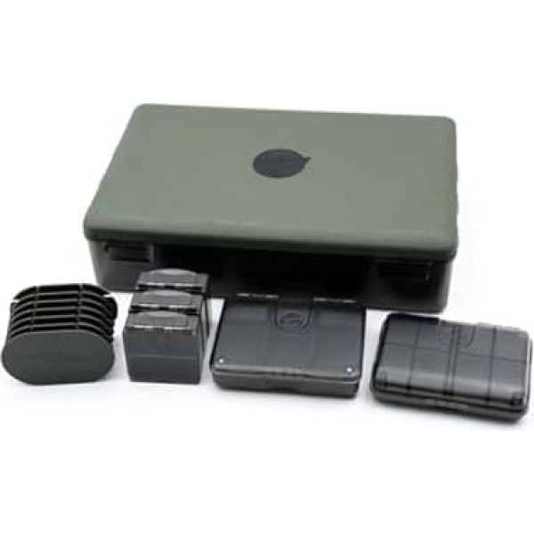 Korda Tackle Box Large Collection KBOX22 › See more product details; Product description The large tackle box collection offers the opportunity to save money and simplify your decision-making by choosing our pre-filled tackle box. Each collection includes a large tackle box packed with our most popular storage containers, providing significant savings compared to buying individually. This ready-to-use solution takes the guesswork out of selecting compatible memory components. In addition to the features of the large tackle box described below, this collection includes: accessory boxes x 3 9 compartment mini box 16 compartment mini box large leader safe tubing box hook safe When we launched the original tackle box, we didn't expect to be flooded with requests for a larger version. However, if we have logically thought about it, there are always equipment items in other pockets that are put into side pockets and left in the bottom of the carry bag. The large tackle box makes this negative by providing enough space to store absolutely everything, neat, safe and organized in one place. This versatile tackle box adapts perfectly to the needs of every user, with 25 individual compartments integrated into the lid. Each section is equipped with a transparent flip cover that not only secures your items, but also allows the contents to be easily identified at a glance. From swirls to heat shrink tubing and kickers to heli-safes, these compartments efficiently organize all your small terminal gear items. The lid also features a proper rig board, just like you would find in a rig safe, complete with a milled, grooved hook grab bar. The rig board can store up to 56 pre-tied rigs and comes with 30 single and 20 double pins to secure them firmly in place. The ingenuity of this tackle box doesn't stop, the rigboard includes an innovative rig rod that stores your spinner booms without the need to attach a hook. This is something Damian Clarke has developed for use in his own rig safe, but now a similar idea has been developed for the large tackle box. To finish the rigboard, there is a highly visible ruler that helps you build the rig or boom at perfect length. Remember, this is only in the lid of the large tackle box and if the lot is not enough, there is another small edge that helps considerably when tying rigs. We've added a small, removable compartment tray that allows you to temporarily place tiny rig components such as hook swivels, beads and hooks in an easily accessible place, ready for you when you need them. The Tackle Box's spacious main compartment features adjustable dividers so you can create custom sections that fit perfectly with your items. Simply slide the dividers to design your ideal organization layout; includes a versatile set of removable dividers - 6 small, 1 medium and 2 large - so you can endlessly reconfigure storage space to meet your changing needs. The permanent walls in the tackle box are perfectly distributed to accommodate our hooklink spools, accessory boxes, bait silk, leadcore, arma cord, leader safes and the kamakura hook boxes along with other items such as scissors and bait needles. Compatible with our mini compartment boxes (sold separately), the large tackle box offers even more organization options. The mini boxes feature clear hinged lids and are available in different configurations - 6, 8, 9 or 16 compartments - perfect for storing smaller items. Built to last from durable, impact-resistant plastic, the lid is firmly secured with magnetic fasteners, eliminating the risk of accidental opening during transit and avoiding the wear and tear of traditional fasteners. Dimensions: 35.5cm x 24cm x 7.5cm * Terminal Tackle & Tools in all product images are not included; Large Tackle Box Collection Items Only Item.; Product description The large tackle box collection offers the opportunity to save money and simplify your decision-making by choosing our pre-filled tackle box. Each collection includes a large tackle box packed with our most popular storage containers, providing significant savings compared to buying individually. This ready-to-use solution takes the guesswork out of selecting compatible memory components. In addition to the features of the large tackle box described below, this collection includes: accessory boxes x 3 9 compartment mini box 16 compartment mini box large leader safe tubing box hook safe When we launched the original tackle box, we didn't expect to be flooded with requests for a larger version. However, if we have logically thought about it, there are always equipment items in other pockets that are put into side pockets and left in the bottom of the carry bag. The large tackle box makes this negative by providing enough space to store absolutely everything, neat, safe and organized in one place. This versatile tackle box adapts perfectly to the needs of every user, with 25 individual compartments integrated into the lid. Each section is equipped with a transparent flip cover that not only secures your items, but also allows the contents to be easily identified at a glance. From swirls to heat shrink tubing and kickers to heli-safes, these compartments efficiently organize all your small terminal gear items. The lid also features a proper rig board, just like you would find in a rig safe, complete with a milled, grooved hook grab bar. The rig board can store up to 56 pre-tied rigs and comes with 30 single and 20 double pins to secure them firmly in place. The ingenuity of this tackle box doesn't stop, the rigboard includes an innovative rig rod that stores your spinner booms without the need to attach a hook. This is something Damian Clarke has developed for use in his own rig safe, but now a similar idea has been developed for the large tackle box. To finish the rigboard, there is a highly visible ruler that helps you build the rig or boom at perfect length. Remember, this is only in the lid of the large tackle box and if the lot is not 