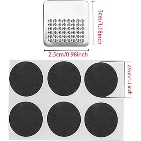 30 pieces bicycle tire patches, 2 pieces metal file, total 32 pieces repair tools. The glueless patches are made of high quality rubber, durable and waterproof material with good stretches. The self-adhesive patches are all pre-glued for easy application, they can easily stick on the tire tube without glue, much easier and faster to repair. The metal rasp works effectively in cleaning and polishing the area around the puncture, which makes the patch stick firmly to the pipe. Our patch repair patches work well on most bicycle tubes and other inflatable items, practical tools for repairing tires, inner tubes, air beds, inflatable boats, paddling pools. › See more product details; Product description Description: Material: rubber. Quantity:30pcs bike tire patches, 2pcs metal file Features: Bicycle rubber picks come in lightweight packages and are easy to carry. You can put it in your backpack and use it if necessary. It can be repaired without additional glue, it is a very useful tool for repairing bicycles, motorcycles and other inflatable items. Application: 1. First, you should rough the edge of the puncture edge with metal rasp and clean the polished surface. 2. Stick the patch directly to the puncture and attach it firmly, wait 5 minutes and then fill the tyre with air, the whole process is easy to complete.; Product description Description: Material: rubber. Quantity:30pcs bike tire patches, 2pcs metal file Features: Bicycle rubber picks come in lightweight packages and are easy to carry. You can put it in your backpack and use it if necessary. It can be repaired without additional glue, it is a very useful tool for repairing bicycles, motorcycles and other inflatable items. Application: 1. First, you should rough the edge of the puncture edge with metal rasp and clean the polished surface. 2. Stick the patch directly to the puncture and attach it firmly, wait 5 minutes and then fill the tyre with air, the whole process is easy to complete.; Description: Material: rubber. Quantity:30pcs bike tire patches, 2pcs metal file Features: Bicycle rubber picks come in lightweight packages and are easy to carry. You can put it in your backpack and use it if necessary. It can be repaired without additional glue, it is a very useful tool for repairing bicycles, motorcycles and other inflatable items. Application: 1. First, you should rough the edge of the puncture edge with metal rasp and clean the polished surface. 2. Stick the patch directly to the puncture and attach it firmly, wait 5 minutes and then fill the tyre with air, the whole process is easy to complete.