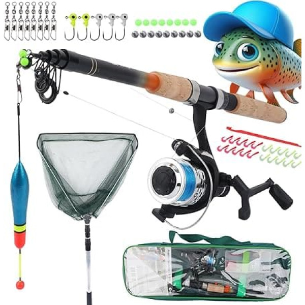 Q-Tac - Angelset Forelle/Barsch mit Kescher [Angelfertig montiert & Angelrolle bespult] Angelset komplett für Gelegenheitsangler & Anfänger, Angel Set für Forellen Angeln, Forellenrute