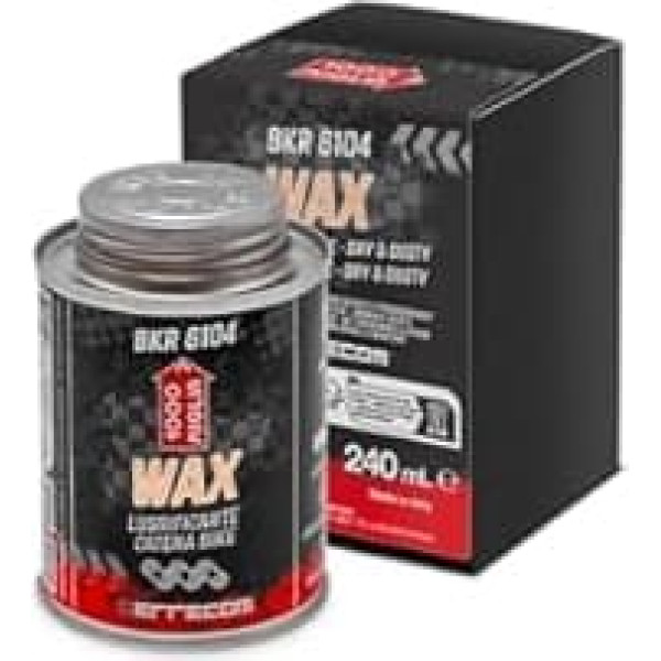 Box with brush for precise and waste-free lubrication Specific bicycle chain wax for use in dry, drought and dusty road conditions Reduces friction and wear of the chain and ensures smooth and quiet shifting without squeaking Increases mobility between the gear elements and extends their service life Does not attract dirt and dust on the bicycle chain Formulated without oil or grease For MTB, Gravel, road bike, everyday bike, enduro, cyclocross and city bike chain sets › See more product details
