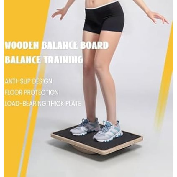 - Perfect size: measuring 43 cm L x 33 cm W x 8 cm H, our one-piece wobble board is fully assembled and ready to use. It trains your core and supports natural movement. - Durable and Safe Design Our balance board features a non-slip bottom with silicone edges and a textured surface for increased friction on different floors, ensuring stability and safety during exercise. - High quality: our boards made from odourless hardwood plywood with a maximum load capacity of 350 pounds are suitable for most adults and offer long-lasting durability and strength. - Improved training challenge: ideal for beginners and people with balance problems, improving balance, motor coordination, weight distribution and core strength. - Portable and compact: Easy to carry and store thanks to its compact size, ideal for use at home, gym or office. › See more product details