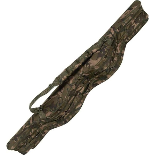 Fox Carp Rod Bag Rods are stored 2 up and 2 downwards, padded inner half baffles to protect the rods and reels, rods and reels cannot touch each other Full length side pocket for landing net and bank sticks, pocket with zip for leads and small parts, padded handles Removable, padded shoulder strap, colour: camouflage, durable and water-repellent material Material: Main outer material: 100% polyester. Coating: 100% polyester. Padding / Filling: 100% Polyethylene › See more product details; Product description Good transport bag for carp rods; Product description Good transport bag for carp rods; Good transport bag for carp rods