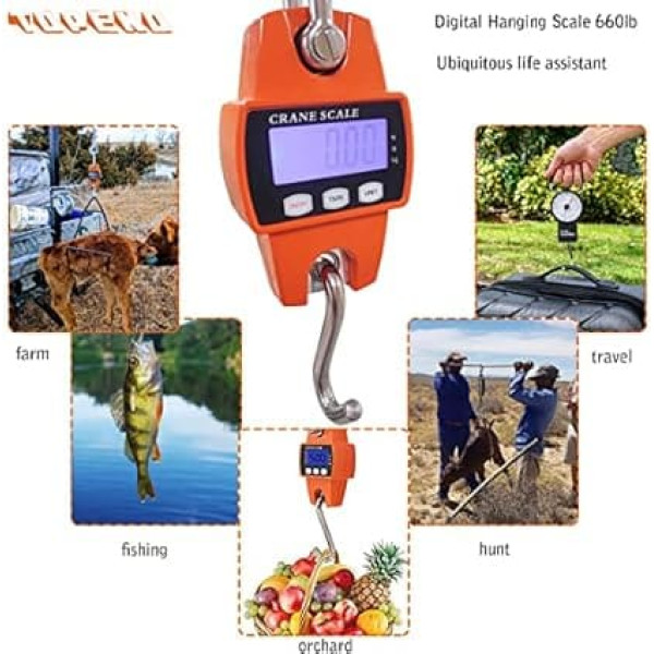 【Portable】Digital play scale (aluminum case) with S-shaped hook, 300kg capacity, suitable for farm, hunting, fish weight, travel, mail, home garage and other indoor and outdoor activities. 【Multifunctional】2 inch digital outdoor scale with LCD LED display with a visual distance of more than 10 meters. Press \; Product description mini hand scale 300 kg / 1100. Aluminium housing. Cast aluminium exterior, almost the same weight as plastic. But stronger and more textured than a plastic body, you don't have to worry about drops, scratches or cracks. Powerful/easy to use. The digital hunting scale is a combination of solid mechanical design and today's most advanced electronics to provide an excellent functional package. The 3 buttons are easy to read and operate, just press and choose the appropriate function you need. It has autozero, zero, tare, hold, automatic shutdown, battery monitoring, overload alarm and unit switch. Locking function. This feature is ideal for weighing live animals. 1 second silence is all we need. Press the \; Product description mini hand scale 300 kg / 1100. Aluminium housing. Cast aluminium exterior, almost the same weight as plastic. But stronger and more textured than a plastic body, you don't have to worry about drops, scratches or cracks. Powerful/easy to use. The digital hunting scale is a combination of solid mechanical design and today's most advanced electronics to provide an excellent functional package. The 3 buttons are easy to read and operate, just press and choose the appropriate function you need. It has autozero, zero, tare, hold, automatic shutdown, battery monitoring, overload alarm and unit switch. Locking function. This feature is ideal for weighing live animals. 1 second silence is all we need. Press the \; mini hand scale 300 kg / 1100. Aluminium housing. Cast aluminium exterior, almost the same weight as plastic. But stronger and more textured than a plastic body, you don't have to worry about drops, scratches or cracks. Powerful/easy to use. The digital hunting scale is a combination of solid mechanical design and today's most advanced electronics to provide an excellent functional package. The 3 buttons are easy to read and operate, just press and choose the appropriate function you need. It has autozero, zero, tare, hold, automatic shutdown, battery monitoring, overload alarm and unit switch. Locking function. This feature is ideal for weighing live animals. 1 second silence is all we need. Press the \