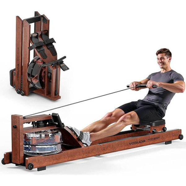 YOSUDA Water Rowing Machine for Home, Rowing Machine Foldable 180° Made of Solid Wood, 182 kg Weight Capacity with Special Monitor and Bluetooth App, Very Quiet, Comfortable Fit