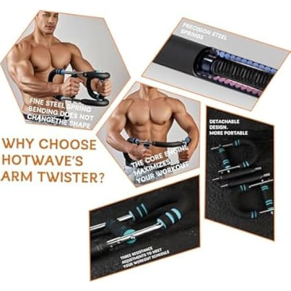 Twister Arm Exerciser The arm trainer works multiple muscle groups, including biceps, triceps, as well as chest and back, abs and thighs. The innovative rotating motion of the product maximises training efficiency and is a great choice for training at home. MULTIFUNCTIONAL TRAINING This muscle trainer is different from traditional arm exercisers in that it stimulates more muscle groups while also involving chest training, back, shoulder and leg training. Simply follow the standard movements to get in shape at home. Adjustable resistance for most fitness levels: This trainer has an adjustable resistance of 40-100 pounds for beginners and advanced users. The high-strength metal springs provide smooth, controlled resistance for progressive force build-up and ensure user safety. COMPACT & GREAT TO TAKE OUT OF THE HOUSE This is a detachable design that easily fits into your backpack, so you can always exercise whether you're on the go or at home. Efficient strength training just anywhere. ERGONOMIC DESIGN FOR SAFE USE This arm trainer is not only designed to help you train effectively, but also keep track of your safety and comfort. Constructed with a reinforced leather guard and padded, non-slip foam handles, it not only reduces the safety risks during exercise, but also extends the life of this equipment. › See more product details; Product description Lieferumfang: 4 Widerstandsstangen (2 verschiedene Widerstände), 2 Griffe, 1 Montageanleitung (evtl. nicht in deutscher Sprache). Verpackungsgewicht: 1,5 kg. Größe: 25,9 x 21,8 x 7,6 cm. Material: Stahllegierung, Acrylnitril-Butadien-Styrol (ABS). Twister Armtrainer, 18 - 45 kg, verstellbares Brust-Trainingsgerät, bequem zu tragen, egal ob Sie ausgehen oder zu Hause Krafttraining machen, es ist eine gute Wahl für Sie selbst oder andere Fitness-Enthusiasten.; Product description Lieferumfang: 4 Widerstandsstangen (2 verschiedene Widerstände), 2 Griffe, 1 Montageanleitung (evtl. nicht in deutscher Sprache). Verpackungsgewicht: 1,5 kg. Größe: 25,9 x 21,8 x 7,6 cm. Material: Stahllegierung, Acrylnitril-Butadien-Styrol (ABS). Twister Armtrainer, 18 - 45 kg, verstellbares Brust-Trainingsgerät, bequem zu tragen, egal ob Sie ausgehen oder zu Hause Krafttraining machen, es ist eine gute Wahl für Sie selbst oder andere Fitness-Enthusiasten.; Lieferumfang: 4 Widerstandsstangen (2 verschiedene Widerstände), 2 Griffe, 1 Montageanleitung (evtl. nicht in deutscher Sprache). Verpackungsgewicht: 1,5 kg. Größe: 25,9 x 21,8 x 7,6 cm. Material: Stahllegierung, Acrylnitril-Butadien-Styrol (ABS). Twister Armtrainer, 18 - 45 kg, verstellbares Brust-Trainingsgerät, bequem zu tragen, egal ob Sie ausgehen oder zu Hause Krafttraining machen, es ist eine gute Wahl für Sie selbst oder andere Fitness-Enthusiasten.