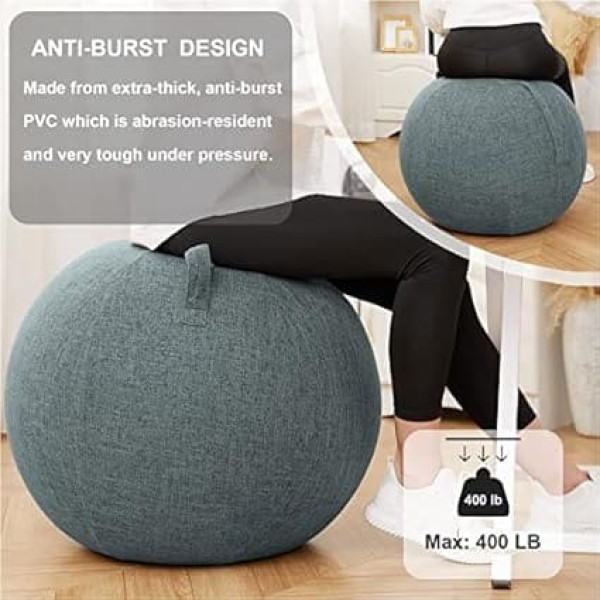 Versatile use: from pregnancy to office facilities to home workouts, this yoga ball serves multiple purposes. Use it as an alternative chair or incorporate it into a variety of effective exercises that target your back and abs. It is also a fun addition to children's play. SLEEK DESIGN Featuring a stylish cotton cover with convenient handle and discreet zipper, this yoga ball elevates your sitting experience. Improve your fitness routine, rehabilitate muscles and relieve back pain while adding a touch of elegance to your home or office. Smart safety features: Designed with a sturdy construction and 360° anti-slip lines, this yoga ball ensures that it stays in place and provides a reliable non-slip seating solution, whether at work or at social gatherings Stable and safe: Designed with anti-burst technology and durable PVC material, this yoga ball can hold users up to 350 pounds. The honeycomb structure and thick walls prioritize safety during your workout. Promote wellness: Suitable for all ages and fitness levels, this yoga ball offers endless possibilities for exercise and relaxation. Experience back pain relief with this adaptable fitness device. › See more product details; Product description - Made of durable canvas fabric for improved wear and scratch resistance. - Features excellent sweat permeability and breathability to keep you cool and dry. Protects your yoga ball from dust, ash and punctures to prolong its life. Non-slip and anti-static properties minimize pilling and increase durability. - Designed with a convenient portable handle for easy carrying or hanging. Compact, lightweight and foldable for effortless storage without taking up much space. Technical data: - Type: Yoga Ball Cover - Material: Canvas - Diameter: 55 cm, 65 cm, 75 cm. Package includes: - 1 x Yoga Ball Cover Note: 1. Due to the light and screen difference, the colors may be slightly different from the pictures. 2. Please allow 0.5-2 cm measurement deviation due to manual measurement.; Product description - Made of durable canvas fabric for improved wear and scratch resistance. - Features excellent sweat permeability and breathability to keep you cool and dry. Protects your yoga ball from dust, ash and punctures to prolong its life. Non-slip and anti-static properties minimize pilling and increase durability. - Designed with a convenient portable handle for easy carrying or hanging. Compact, lightweight and foldable for effortless storage without taking up much space. Technical data: - Type: Yoga Ball Cover - Material: Canvas - Diameter: 55 cm, 65 cm, 75 cm. Package includes: - 1 x Yoga Ball Cover Note: 1. Due to the light and screen difference, the colors may be slightly different from the pictures. 2. Please allow 0.5-2 cm measurement deviation due to manual measurement.; - Made of durable canvas fabric for improved wear and scratch resistance. - Features excellent sweat permeability and breathability to keep you cool and dry. Protects your yoga ball from dust, ash and punctures to prolong its life. Non-slip and anti-static properties minimize pilling and increase durability. - Designed with a convenient portable handle for easy carrying or hanging. Compact, lightweight and foldable for effortless storage without taking up much space. Technical data: - Type: Yoga Ball Cover - Material: Canvas - Diameter: 55 cm, 65 cm, 75 cm. Package includes: - 1 x Yoga Ball Cover Note: 1. Due to the light and screen difference, the colors may be slightly different from the pictures. 2. Please allow 0.5-2 cm measurement deviation due to manual measurement.