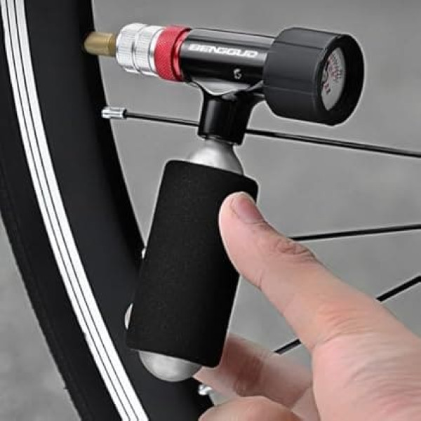 EFFORTLESS TURN CONTROL Easily communicate with the built-in dial for fast inflation of CO2 bike pump. This ensures that your tyres are filled in no time during cycling adventures and provides a practical solution Quick tyre inflation: screw the CO2 filling firmly to the tyre nozzle for quick inflation. Enjoy the fast air supply for your rides and significantly reduce the waiting time. Note: the canister Safety Foam Protection The included foam sleeve minimizes the risk of frost in cold CO2 and improves safety when operating this mini bike pump. The gloves are designed for additional protection of the DURABLE ALUMINUM DESIGN Made of high quality aluminum alloy, the portable tire inflation provides reliable function and resilience with a wide usage. Perfect for curing bike trips and various weather conditions DOUBLE VALVE COMPATIBILITY Easily adjust the Bike Tire Inflator to Presta and Schrader valves without the need for additional adapters to optimize the tire inflation process regardless of bike model. › See more product details; Product description Product features: Origin: Mainland China The gas cylinder is not included. Main Material: Aluminum Alloy Color: Size: approx. 8.2cm x 3.8cm x 2.7cm Net weight: approx. 72g Suitable for gas nozzle: US nozzle AV, French FV nozzle. Instructions for use: 1. Place a protective cover on the gas cylinder (very important) and screw the nozzle head with a metal needle. 2. Screw the gas cylinder at the bottom until the metal needle pierces the gas cylinder. How to determine that the gas cylinder has been perforated? After the gas cylinder is perforated, there is a small hole in the nozzle and it will release some gas. 3. Align the nozzle head with the gas nozzle (when used on the prefabricated valve, the prefabricated valve core must be loosened), tighten the valve clockwise with the valve nozzle. 4. After completing the previous step, no gas spray will be done from the gas cylinder nozzle. This step is to complete the important step. Unscrew the gas cylinder counterclockwise. There is space on the nozzle of the gas cylinder. The CO2 gas is immediately injected into the inner tube and it only takes 2-3 seconds to fill the inner tube. 5. After completion of inflation, the gas cylinder and the gas nozzle are iced due to the rapid cooling. Be sure to protect your hands and unscrew the nozzle head. Inflation is complete. Note: Due to the difference between different monitors, the picture may not reflect the actual color of the item. Thank you for your understanding. Please allow 1-2cm error due to manual measurement; Product description Product features: Origin: Mainland China The gas cylinder is not included. Main Material: Aluminum Alloy Color: Size: approx. 8.2cm x 3.8cm x 2.7cm Net weight: approx. 72g Suitable for gas nozzle: US nozzle AV, French FV nozzle. Instructions for use: 1. Place a protective cover on the gas cylinder (very important) and screw the nozzle head with a metal needle. 2. Screw the gas cylinder at the bottom until the metal needle pierces the gas cylinder. How to determine that the gas cylinder has been perforated? After the gas cylinder is perforated, there is a small hole in the nozzle and it will release some gas. 3. Align the nozzle head with the gas nozzle (when used on the prefabricated valve, the prefabricated valve core must be loosened), tighten the valve clockwise with the valve nozzle. 4. After completing the previous step, no gas spray will be done from the gas cylinder nozzle. This step is to complete the important step. Unscrew the gas cylinder counterclockwise. There is space on the nozzle of the gas cylinder. The CO2 gas is immediately injected into the inner tube and it only takes 2-3 seconds to fill the inner tube. 5. After completion of inflation, the gas cylinder and the gas nozzle are iced due to the rapid cooling. Be sure to protect your hands and unscrew the nozzle head. Inflation is complete. Note: Due to the difference between different monitors, the picture may not reflect the actual color of the item. Thank you for your understanding. Please allow 1-2cm error due to manual measurement; Product features: Origin: Mainland China The gas cylinder is not included. Main Material: Aluminum Alloy Color: Size: approx. 8.2cm x 3.8cm x 2.7cm Net weight: approx. 72g Suitable for gas nozzle: US nozzle AV, French FV nozzle. Instructions for use: 1. Place a protective cover on the gas cylinder (very important) and screw the nozzle head with a metal needle. 2. Screw the gas cylinder at the bottom until the metal needle pierces the gas cylinder. How to determine that the gas cylinder has been perforated? After the gas cylinder is perforated, there is a small hole in the nozzle and it will release some gas. 3. Align the nozzle head with the gas nozzle (when used on the prefabricated valve, the prefabricated valve core must be loosened), tighten the valve clockwise with the valve nozzle. 4. After completing the previous step, no gas spray will be done from the gas cylinder nozzle. This step is to complete the important step. Unscrew the gas cylinder counterclockwise. There is space on the nozzle of the gas cylinder. The CO2 gas is immediately injected into the inner tube and it only takes 2-3 seconds to fill the inner tube. 5. After completion of inflation, the gas cylinder and the gas nozzle are iced due to the rapid cooling. Be sure to protect your hands and unscrew the nozzle head. Inflation is complete. Note: Due to the difference between different monitors, the picture may not reflect the actual color of the item. Thank you for your understanding. Please allow 1-2cm error due to manual measurement