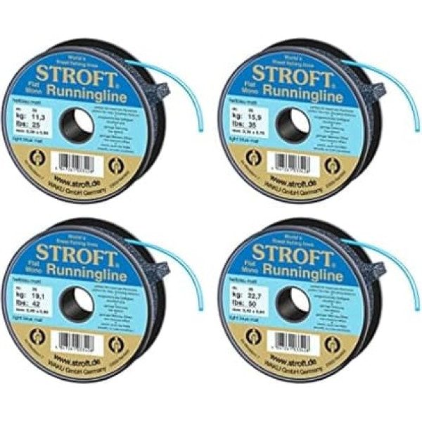Flat Mono - Monofilament race track with flat and rectangular cross section Low diameter without coating, very good maneuverability and maximum casting distance Perfectly fitted extension Soft and without Uds, even at low temperatures Available as a 35 m spool in 25 lbs, 35 lbs, 42 lbs, 50 lbs. Colour: light blue matt › See more product details; Product description This is a monofilament cord with a flat, rectangular cross section, a so-called flat mono, without coating. The STROFT running line offers the best shooting properties and perfect handling. Thanks to the smaller diameter and significantly less friction, it is significantly superior to the coated running lines in terms of casting distance. In tuning, special attention was paid to optimal suppleness and a perfectly coordinated stretch. In addition, an optimised raw material composition has created a running line that can be easily stretched and remains squiggle-free - even at low temperatures; Product description This is a monofilament cord with a flat, rectangular cross section, a so-called flat mono, without coating. The STROFT running line offers the best shooting properties and perfect handling. Thanks to the smaller diameter and significantly less friction, it is significantly superior to the coated running lines in terms of casting distance. In tuning, special attention was paid to optimal suppleness and a perfectly coordinated stretch. In addition, an optimised raw material composition has created a running line that can be easily stretched and remains squiggle-free - even at low temperatures; This is a monofilament cord with a flat, rectangular cross section, a so-called flat mono, without coating. The STROFT running line offers the best shooting properties and perfect handling. Thanks to the smaller diameter and significantly less friction, it is significantly superior to the coated running lines in terms of casting distance. In tuning, special attention was paid to optimal suppleness and a perfectly coordinated stretch. In addition, an optimised raw material composition has created a running line that can be easily stretched and remains squiggle-free - even at low temperatures