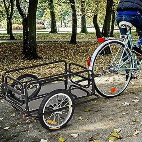 ABNEHMBARE VORDER- UND RÜCKSEITE: Die Vorder- und Rückseite lassen sich leicht abnehmen, so dass mehr Platz entsteht und größere Gegenstände auf dem Anhänger platziert werden können. LANGLEBIGE KONSTRUKTION: Ein stabiler Stahlrahmen und ein verstärkter Kunststoff-Boden sorgen für eine robuste Konstruktion. Zusätzlich zur Vorder- und Rückseite lassen sich die Seitenwände ausklappen, so dass sich auch große Gegenstände leicht transportieren lassen. FALTBARES DESIGN: Dieser Anhänger kann durch Zusammenklappen leicht montiert und aufgestellt werden, wodurch er einfach zu transportieren ist und platzsparend verstaut werden kann. FAHRRADKUPPLUNG INKLUSIVE: Im Lieferumfang enthalten ist eine einfach zu bedienende Universalkupplung, die am Hinterrad Ihres Fahrrads befestigt wird, um ein schnelles und einfaches Anbringen und Entfernen zu ermöglichen. PRODUKTDATEN: Gesamtmaße: 139L x 71,5B x 49H cm. Belastbarkeit: 40 kg. Montage erforderlich. Der Anhänger ist geeignet für 20\; Product description Der Fahrradanhänger von HOMCOM bildet eine robuste und bequeme Art des Transports. Die Stahlrahmenkonstruktion mit Kunststoffboden ermöglicht den bequemen Transport von Lasten bis zu 50 kg. 2 luftgefüllte Räder bieten zusätzliche Stabilität und eine sanftere Fahrt auch bei voller Beladung. Die Universal-Kupplung ermöglicht eine schnelle Befestigung an den meisten Fahrrädern.Beschreibung:● 2 Reflektoren an den Rädern für mehr Sicherheit ● Stabile Stahlrahmenkonstruktion mit Kunststoffboden, der ein Gewicht von bis zu 50 kg trägt ● Große, luftgefüllte 16\; Product description Der Fahrradanhänger von HOMCOM bildet eine robuste und bequeme Art des Transports. Die Stahlrahmenkonstruktion mit Kunststoffboden ermöglicht den bequemen Transport von Lasten bis zu 50 kg. 2 luftgefüllte Räder bieten zusätzliche Stabilität und eine sanftere Fahrt auch bei voller Beladung. Die Universal-Kupplung ermöglicht eine schnelle Befestigung an den meisten Fahrrädern.Beschreibung:● 2 Reflektoren an den Rädern für mehr Sicherheit ● Stabile Stahlrahmenkonstruktion mit Kunststoffboden, der ein Gewicht von bis zu 50 kg trägt ● Große, luftgefüllte 16\; Der Fahrradanhänger von HOMCOM bildet eine robuste und bequeme Art des Transports. Die Stahlrahmenkonstruktion mit Kunststoffboden ermöglicht den bequemen Transport von Lasten bis zu 50 kg. 2 luftgefüllte Räder bieten zusätzliche Stabilität und eine sanftere Fahrt auch bei voller Beladung. Die Universal-Kupplung ermöglicht eine schnelle Befestigung an den meisten Fahrrädern.Beschreibung:● 2 Reflektoren an den Rädern für mehr Sicherheit ● Stabile Stahlrahmenkonstruktion mit Kunststoffboden, der ein Gewicht von bis zu 50 kg trägt ● Große, luftgefüllte 16\