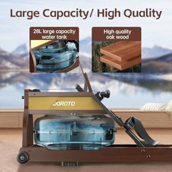 JOROTO MR380/MR390 Rudergerät für Zuhause, Klappbare Rudermaschine aus Eichenholz, 28L Vergrößerung des Wassertanks,158KG Gewichtskapazität mit Bluetooth Monitor, Telefon- und Tablet-Halterung