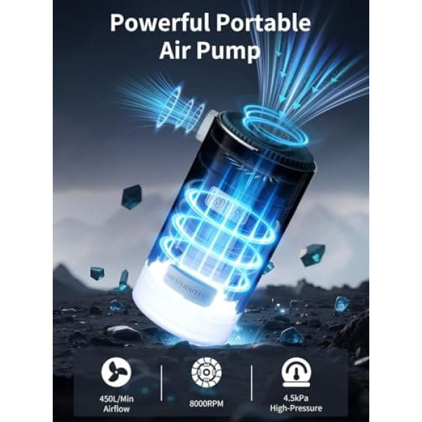 K Kasonic Electric Air Pump with Camping Light, Rechargeable Camping Pumps with 5 Nozzles for Deflating, Inflating Air Mattresses, Pool Toys, Portable Pump for Outdoor Travel