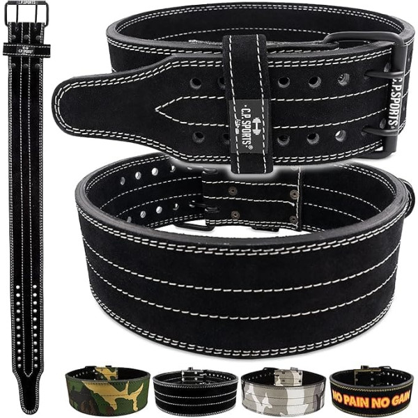 The C.P. Sports Powerlifting belt is a high-quality and robust weightlifting belt made of 3-layer Buffalo leather - ideal for maximum training with heavy weights, for example in the field of strength training, powerlifting/weightlifting and triad combat! For a safe and injury-free workout, the belt supports and stabilises the spine and relieves the knees during heavy squats, deadlifts, bench presses and other strength sports disciplines. An indispensable training accessory for any intensive and professional workout in the gym, home gym or competition The particularly tear-resistant leather is stiff and stable in profile and at the same time flexible in the longitudinal direction, for optimal support and perfect fit. Four different design variants, including with contrasting seams, C.P. Sports logo, etc. provide a stylish statement and a cool look C.P. Sports is the brand when it comes to everything you need for your training. We offer an extensive range of strong products for strong people at home and abroad and are Germany's largest manufacturer and supplier of first-class bodybuilding and fitness equipment. Thanks to decades of experience, we know exactly how we can optimally support your workout. With C.P. Sports you reach your goal – never give up! Box contents: 1 x Powerlifting belt in the chosen colour and size (Note: please determine the correct size before ordering, simply measure the waist circumference with a tape measure at belly button height and compare with the cm details in the size selection). › See more product details