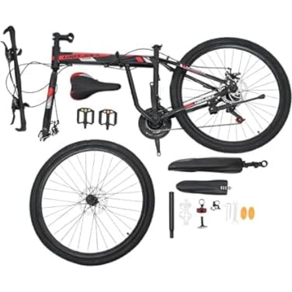 High-quality materials: the frame, spokes and flywheel are made of high-quality carbon steel. The high-strength and wear-resistant steel makes the mountain bike more stable, durable and less susceptible to deformation. Comfortable ride: The seat and handlebars of this mountain bike are ergonomically shaped, so you can ride with less effort. The saddle is made of high quality foam to give you a soft feel. These thoughtful designs allow you to stay comfortable even after hours of driving. Excellent weight capacity: the high-quality materials and solid construction of this mountain bike ensure a maximum weight capacity of 286.60 pounds, so it can be used by an average adult or teenager. Adjustable height: the mountain bike has an adjustable saddle height of 31.49 - 37.40 inches for people between 62.99 - 74.80 inches tall. The adjustable height allows you to adjust the height to suit your height and habits for a comfortable ride. Easy to carry: the mountain bike has a foldable design and its folded dimensions of only 37.4 x 13.77 x 39.37 inches can easily fit in the boot. And at only 44.09 pounds, the mountain bike is easy to carry. › See more product details; Product description Description This 21-speed mountain bike is the ideal opportunity for a stylish ride. Equipped with a high quality carbon steel frame, double front and rear disc brakes and a digital 21-speed manual gear, it offers you a comfortable, smooth and effortless ride in the city or in the mountains. Application: This mountain bike is suitable for mountain, city and other rides. It is suitable for people weighing less than 280.60 lbs and 62.99 - 74.80 in height. Specification Material: high carbon steel, rubber, plastic, foam, PU Style: mountain bike Process: paint spraying Color: Black, Red/Black, White Further development model: chains. Brake system: pulley disc brake. Frame type: rigid frame. Speed: 21 times Frame Construction: Folded Bike Brakes: mechanical disc brakes front and rear. Front fork type: suspension fork (low gear without cushioning). Suitable height: 160-190 cm/62.99 - 74.80 inches. Maximum load: 130 kg/286.60 lbs. Gross weight: 21 kg/46 x 29 lbs. Net weight: 20 kg/44.09 lbs. Package size: 135*72*19cm/53.14*28.34*7.48in Product size: 172*106cm/67.71*41.73in Wheel diameter: 65 cm/26 inches. Distance between seat and floor: 80-95 cm/31.49-37.40 inches. Folded size: about 38*35*100cm/37.4*13.77*39.37in Package Included 1 x mountain bike. All accessories required for installation Notes: Please allow slight colour difference due to the shooting light and 1-3 cm error due to manual measurement. Please make sure you do not mind this before ordering.; Product description Description This 21-speed mountain bike is the ideal opportunity for a stylish ride. Equipped with a high quality carbon steel frame, double front and rear disc brakes and a digital 21-speed manual gear, it offers you a comfortable, smooth and effortless ride in the city or in the mountains. Application: This mountain bike is suitable for mountain, city and other rides. It is suitable for people weighing less than 280.60 lbs and 62.99 - 74.80 in height. Specification Material: high carbon steel, rubber, plastic, foam, PU Style: mountain bike Process: paint spraying Color: Black, Red/Black, White Further development model: chains. Brake system: pulley disc brake. Frame type: rigid frame. Speed: 21 times Frame Construction: Folded Bike Brakes: mechanical disc brakes front and rear. Front fork type: suspension fork (low gear without cushioning). Suitable height: 160-190 cm/62.99 - 74.80 inches. Maximum load: 130 kg/286.60 lbs. Gross weight: 21 kg/46 x 29 lbs. Net weight: 20 kg/44.09 lbs. Package size: 135*72*19cm/53.14*28.34*7.48in Product size: 172*106cm/67.71*41.73in Wheel diameter: 65 cm/26 inches. Distance between seat and floor: 80-95 cm/31.49-37.40 inches. Folded size: about 38*35*100cm/37.4*13.77*39.37in Package Included 1 x mountain bike. All accessories required for installation Notes: Please allow slight colour difference due to the shooting light and 1-3 cm error due to manual measurement. Please make sure you do not mind this before ordering.; Description This 21-speed mountain bike is the ideal opportunity for a stylish ride. Equipped with a high quality carbon steel frame, double front and rear disc brakes and a digital 21-speed manual gear, it offers you a comfortable, smooth and effortless ride in the city or in the mountains. Application: This mountain bike is suitable for mountain, city and other rides. It is suitable for people weighing less than 280.60 lbs and 62.99 - 74.80 in height. Specification Material: high carbon steel, rubber, plastic, foam, PU Style: mountain bike Process: paint spraying Color: Black, Red/Black, White Further development model: chains. Brake system: pulley disc brake. Frame type: rigid frame. Speed: 21 times Frame Construction: Folded Bike Brakes: mechanical disc brakes front and rear. Front fork type: suspension fork (low gear without cushioning). Suitable height: 160-190 cm/62.99 - 74.80 inches. Maximum load: 130 kg/286.60 lbs. Gross weight: 21 kg/46 x 29 lbs. Net weight: 20 kg/44.09 lbs. Package size: 135*72*19cm/53.14*28.34*7.48in Product size: 172*106cm/67.71*41.73in Wheel diameter: 65 cm/26 inches. Distance between seat and floor: 80-95 cm/31.49-37.40 inches. Folded size: about 38*35*100cm/37.4*13.77*39.37in Package Included 1 x mountain bike. All accessories required for installation Notes: Please allow slight colour difference due to the shooting light and 1-3 cm error due to manual measurement. Please make sure you do not mind this before ordering.