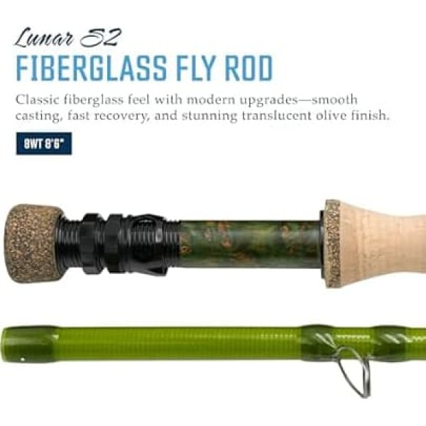Made from high quality S2 fibreglass Faster recovery and lighter weight than traditional fiberglass Classic, smooth action that makes glass rods so popular › See more product details; Product description An old glass feel with a modern twist. Our Lunar S2 series of S2 glass rods are designed to have an old glass feel but lighter with slightly faster action. We were able to do this with today's advanced fiberglass materials and the expertise of our rod designer. Quick recovery tip. One thing we don't like about many glass rods is an overly soft tip that robs your casting energy and gives you arm fatigue. We designed the Lunar rods to have a fast recovering tip that eliminates overshoots, allowing the rod's casting energy to go straight into your line without them wobbling. Progressive cone with reserved power. The progressive action allows you to make smooth, accurate short to medium casts, but it also has plenty of reserved power to bombard the line when needed. Excellent rolling casts. The Lunar rods with their deep rod flex are also ideal for precise roll throws. Great hook sets. The Lunar S-Glass rods are also stiff enough to give you a great hook set and have enough backbone to effectively fight fish, but elastic enough to bend fully into the handle if needed. Compact 4-piece rods. All Lunar rods are 4 pieces that fold up great for travel and backpacking. Lifetime Warranty One thing we do differently in the glass world is a simple lifetime warranty. Instead of getting you to ship your rod to us for repairs, we will send the spare parts directly to you for a warranty fee, so you get back to fishing faster.; Product description An old glass feel with a modern twist. Our Lunar S2 series of S2 glass rods are designed to have an old glass feel but lighter with slightly faster action. We were able to do this with today's advanced fiberglass materials and the expertise of our rod designer. Quick recovery tip. One thing we don't like about many glass rods is an overly soft tip that robs your casting energy and gives you arm fatigue. We designed the Lunar rods to have a fast recovering tip that eliminates overshoots, allowing the rod's casting energy to go straight into your line without them wobbling. Progressive cone with reserved power. The progressive action allows you to make smooth, accurate short to medium casts, but it also has plenty of reserved power to bombard the line when needed. Excellent rolling casts. The Lunar rods with their deep rod flex are also ideal for precise roll throws. Great hook sets. The Lunar S-Glass rods are also stiff enough to give you a great hook set and have enough backbone to effectively fight fish, but elastic enough to bend fully into the handle if needed. Compact 4-piece rods. All Lunar rods are 4 pieces that fold up great for travel and backpacking. Lifetime Warranty One thing we do differently in the glass world is a simple lifetime warranty. Instead of getting you to ship your rod to us for repairs, we will send the spare parts directly to you for a warranty fee, so you get back to fishing faster.; An old glass feel with a modern twist. Our Lunar S2 series of S2 glass rods are designed to have an old glass feel but lighter with slightly faster action. We were able to do this with today's advanced fiberglass materials and the expertise of our rod designer. Quick recovery tip. One thing we don't like about many glass rods is an overly soft tip that robs your casting energy and gives you arm fatigue. We designed the Lunar rods to have a fast recovering tip that eliminates overshoots, allowing the rod's casting energy to go straight into your line without them wobbling. Progressive cone with reserved power. The progressive action allows you to make smooth, accurate short to medium casts, but it also has plenty of reserved power to bombard the line when needed. Excellent rolling casts. The Lunar rods with their deep rod flex are also ideal for precise roll throws. Great hook sets. The Lunar S-Glass rods are also stiff enough to give you a great hook set and have enough backbone to effectively fight fish, but elastic enough to bend fully into the handle if needed. Compact 4-piece rods. All Lunar rods are 4 pieces that fold up great for travel and backpacking. Lifetime Warranty One thing we do differently in the glass world is a simple lifetime warranty. Instead of getting you to ship your rod to us for repairs, we will send the spare parts directly to you for a warranty fee, so you get back to fishing faster.