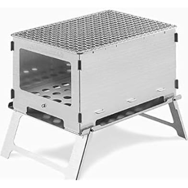 Tabletop Barbecue Grill for Garden Picnics Party Folding Firewood Stove BBQ Grills Portable Outdoor Camping Barbecue Rack Stainless Steel Household Cooker Table BBQ (Colour: Big Stove 28 x 18.5 cm)