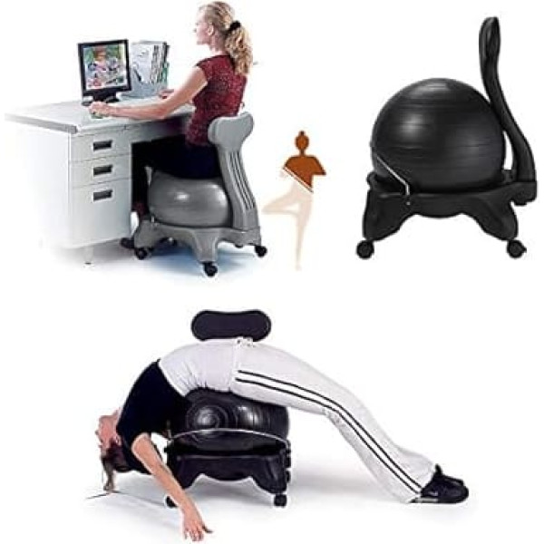 ▶ DURABLE WHEELS: Unlike the gym ball that rolls on the dirty floor in the office. The chair stays in place. If you want to move it, the wheels move easily. Office house chair: This material is made of ABS + PE and can withstand a pressure of 150 kg. The removable backrest chair transforms our chair into a more comfortable sitting position and helps you continue to participate in central and challenging sitting positions. At the same time, you can train with a fitness ball. Product features: it is 79 cm high and has a diameter of 52 cm. It can hold 300 kg. The material of the yoga ball is PVC. And easy to assemble. ▶ MULTIPURPOSE: You can take the Swiss ball off the chair and exercise with it. Fitness ball will improve your workout. Traditional exercises are more intense and effective. This ball provides a full body workout. The exercise ball is also ideal for pre-birth and postpartum exercises. Mothers can bring back their shape. After birth, the exercise ball works well to strengthen the abdominal muscles. ▶ CUSTOMER SERVICE: If you have any problems with our product, please contact us directly and we will solve your problem. Your satisfaction is our priority. › See more product details; Product description The fitness ball chair is a revolution in sitting that aims to reduce the problems associated with prolonged sitting at work. All the benefits of a Swiss office chair ball. With this chair, you can increase your fitness and relieve back pain while you work. The fitness gymnastics ball chair developed by wellness experts strengthens the body, improves posture and eliminates back pain. When you sit in the office, at the computer or even in front of the TV and replace your conventional chair with the exercise ball chair, your balance is improved and your lumbar and abdominal muscles are strengthened, which means you stand straight, slim and feel fitter. The fitness gymnastics ball chair takes up no more space than a traditional desk chair, but it is more than just a seat so you can participate in micro training all day long. Product features: * Built-in stability ball * Secure base with easy to move lockable casters * High quality anti-burst balance ball * Variable inflatable for optimal seat height/comfort Customer service If you have any problems with our product, please contact us directly and we will solve your problem. Your satisfaction is our priority.; Product description The fitness ball chair is a revolution in sitting that aims to reduce the problems associated with prolonged sitting at work. All the benefits of a Swiss office chair ball. With this chair, you can increase your fitness and relieve back pain while you work. The fitness gymnastics ball chair developed by wellness experts strengthens the body, improves posture and eliminates back pain. When you sit in the office, at the computer or even in front of the TV and replace your conventional chair with the exercise ball chair, your balance is improved and your lumbar and abdominal muscles are strengthened, which means you stand straight, slim and feel fitter. The fitness gymnastics ball chair takes up no more space than a traditional desk chair, but it is more than just a seat so you can participate in micro training all day long. Product features: * Built-in stability ball * Secure base with easy to move lockable casters * High quality anti-burst balance ball * Variable inflatable for optimal seat height/comfort Customer service If you have any problems with our product, please contact us directly and we will solve your problem. Your satisfaction is our priority.; The fitness ball chair is a revolution in sitting that aims to reduce the problems associated with prolonged sitting at work. All the benefits of a Swiss office chair ball. With this chair, you can increase your fitness and relieve back pain while you work. The fitness gymnastics ball chair developed by wellness experts strengthens the body, improves posture and eliminates back pain. When you sit in the office, at the computer or even in front of the TV and replace your conventional chair with the exercise ball chair, your balance is improved and your lumbar and abdominal muscles are strengthened, which means you stand straight, slim and feel fitter. The fitness gymnastics ball chair takes up no more space than a traditional desk chair, but it is more than just a seat so you can participate in micro training all day long. Product features: * Built-in stability ball * Secure base with easy to move lockable casters * High quality anti-burst balance ball * Variable inflatable for optimal seat height/comfort Customer service If you have any problems with our product, please contact us directly and we will solve your problem. Your satisfaction is our priority.