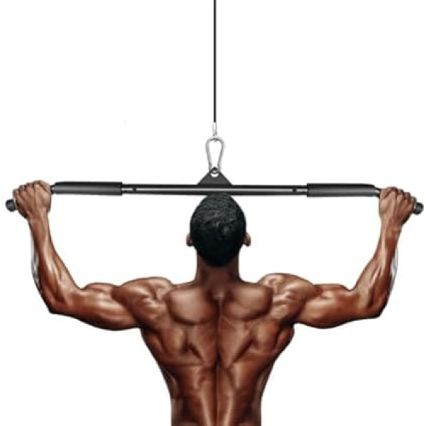 PACKAGE INCLUDES The LAT pull cable attachment includes a lat pull bar and metal buckle, making it easier for you to set up your own home gym. This versatile cable attachment can be easily connected to cable tractors, rowing machines or self-made pulley systems. It is perfect for forehand and backhand pulling movements and trains targeted muscles such as the posterior deltoids and upper back. HEAVY DUTY CONSTRUCTION The solid steel LAT pull cable attachment with smooth welds is designed for heavy duty. With a load capacity of up to 150 kg, it meets the requirements of different training routines - whether for home training or professional use in the gym. Enjoy the uncomplicated connection for a smooth and efficient training experience. Detachable Handle for Easy Storage The LAT pull cable attachment is removable for easy carrying and storage. The soft, rubberized handles ensure comfort during use, reduce hand fatigue and provide secure, non-slip grip. Unlike hard plastic or ribbed steel handles, this design minimises discomfort even during extended workouts. EASY INSTALLATION AND CONNECTION - The LAT pull cable attachment features a durable metal buckle for quick and easy attachment to any fitness equipment. This seamless connection allows for faster build and smooth transitions between exercises, so you can focus on your workout. Integrate this attachment into your home gym and start your fitness program effortlessly. MULTIPURPOSE FOR VARIOUS EXERCISES - This LAT pull cable attachment is compatible with a variety of fitness equipment, including lat pull machines, cable pull systems, squat stands and power racks. It is perfect for a variety of exercises such as lat pulls, triceps presses, bicep curls, rowing and strength training, making it the ideal choice for anyone who strives for a stronger, more defined body. › See more product details; Product description The LAT pull cable attachment is the perfect addition to any home gym and has been specially designed for fitness enthusiasts who want to strengthen their upper body strength and achieve their fitness goals. With this versatile attachment, you can perform a variety of exercises including lat pulls, triceps presses, bicep curls, rowing exercises and strength training. It is ideal for targeted training of important muscle groups such as triceps, back, shoulders, stomach and biceps and is therefore ideal for full body training and muscle building. The LAT pull cable attachment is made of solid steel and can hold up to 150 kg. This makes it robust enough for even the most intense training sessions. Whether at home or in the gym, this attachment meets all your strength training needs. The bar is equipped with foam coated handles on both sides that provide a non-slip, comfortable grip, minimising hand fatigue. The included metal buckle ensures a secure connection to your cable machine, allowing for quick and hassle-free setup and seamless integration into your existing training program. This LAT pull cable attachment is fully compatible with a variety of fitness equipment, including lat pull machines, strength equipment, squat stands and power racks. It is the perfect device for anyone looking to build a stronger, more defined torso. Whether you are a beginner or experienced fitness enthusiast, this attachment will take your workout to the next level. Specifications: Product Name: LAT Pull Cable Attachment Material: durable steel. Length options: 40 cm / 102 cm. Load capacity: 150 kg. Package includes: 1 x fitness bar, 1 x metal buckle.; Product description The LAT pull cable attachment is the perfect addition to any home gym and has been specially designed for fitness enthusiasts who want to strengthen their upper body strength and achieve their fitness goals. With this versatile attachment, you can perform a variety of exercises including lat pulls, triceps presses, bicep curls, rowing exercises and strength training. It is ideal for targeted training of important muscle groups such as triceps, back, shoulders, stomach and biceps and is therefore ideal for full body training and muscle building. The LAT pull cable attachment is made of solid steel and can hold up to 150 kg. This makes it robust enough for even the most intense training sessions. Whether at home or in the gym, this attachment meets all your strength training needs. The bar is equipped with foam coated handles on both sides that provide a non-slip, comfortable grip, minimising hand fatigue. The included metal buckle ensures a secure connection to your cable machine, allowing for quick and hassle-free setup and seamless integration into your existing training program. This LAT pull cable attachment is fully compatible with a variety of fitness equipment, including lat pull machines, strength equipment, squat stands and power racks. It is the perfect device for anyone looking to build a stronger, more defined torso. Whether you are a beginner or experienced fitness enthusiast, this attachment will take your workout to the next level. Specifications: Product Name: LAT Pull Cable Attachment Material: durable steel. Length options: 40 cm / 102 cm. Load capacity: 150 kg. Package includes: 1 x fitness bar, 1 x metal buckle.; The LAT pull cable attachment is the perfect addition to any home gym and has been specially designed for fitness enthusiasts who want to strengthen their upper body strength and achieve their fitness goals. With this versatile attachment, you can perform a variety of exercises including lat pulls, triceps presses, bicep curls, rowing exercises and strength training. It is ideal for targeted training of important muscle groups such as triceps, back, shoulders, stomach and biceps and is therefore ideal for full body training and muscle building. The LAT pull cable attachment is made of solid steel and can hold up to 150 kg. This makes it robust enough for even the most intense training sessions. Whether at home or in the gym, this attachment meets all you