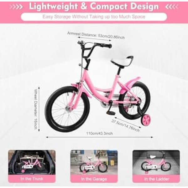 Cutycaty 16 Inch Children's Bicycle with Auxiliary Wheel for Boys and Girls from 5-8 Years