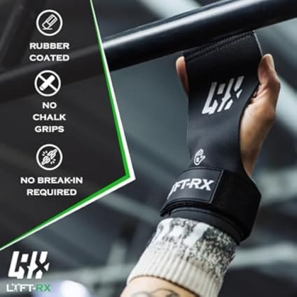 LYFT-RX Valiant Chalkless Grips - Rubber Coated, No Chalk, No Hole/Fingerless, Palm Hand Grip w/Wrist Strap, Glove - Weightlifting, Weightlifting, Crossfitness, Pullps, Muscle Ups, Gymnastics, Lift