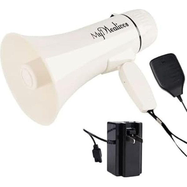 MyMealivos 35W Megafon Bullhorn eingebaute Sirene und 240er Aufzeichnung, Lautstärkeregelung für Innen- und Außenaktivitäten-Weiß