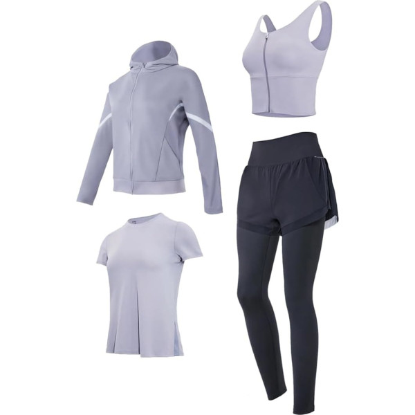 Women Pilates Set 4 Pieces Black Yoga Outfit Jacket Bra Shorts & Pants Breathable Moisture Wicking for 59 to 59 Inch 11 Inch