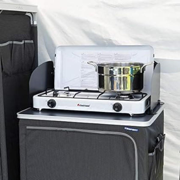 2 Stainless steel burners Fixed burner caps Lid Plastic feet Integrated handles › See more product details