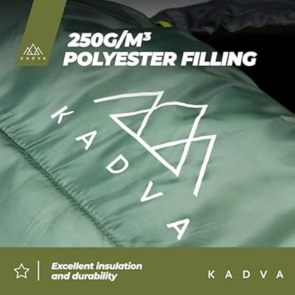 Tear resistance: thanks to the ripstop technology in the KADVA Faran L camping sleeping bag, the structure of the fabric is reinforced, which increases its tear resistance. If damage occurs, the ripstop prevents the damage from progressing, which significantly extends the life of the outdoor sleeping bag. The perfect solution for anyone looking for robust and reliable hiking equipment. Comfortable insulation: the Faran L sleeping bag is characterised by the insulation used made of 250 g/m3 polyester, which offers excellent insulation properties. Polyester is a durable, lightweight and easy-care material that does not lose its insulating properties even when wet. Such a filling guarantees warmth and comfort, no matter what the weather. Heat retention: this blanket sleeping bag model has a mummy shape, which is most efficient for heat retention. This type of construction minimizes the area to be heated, which increases the effectiveness of thermal insulation. The hood over the head and the Velcro flap that covers the zip also protect against heat loss and ensure a warm and restful sleep in the sleeping bag and a good alternative to a down sleeping bag. The right size: the KADVA Faran L sleeping bag small pack size has the dimensions 220 x 80 cm and therefore offers comfortable space for one person. These dimensions allow the user to move freely in the summer sleeping bag, which increases comfort. Regardless of the sleeping position, the user has enough space, which makes the sleeping bag ultra-light and extremely comfortable. Functional closure: the ultra-light sleeping bag is equipped with a SBS closure with long drawstring, which makes it easier to open and close, even if you are already in the sleeping bag in summer. The SBS zipper is a high-quality component that ensures smooth operation and durability, which is crucial for comfort. › See more product details