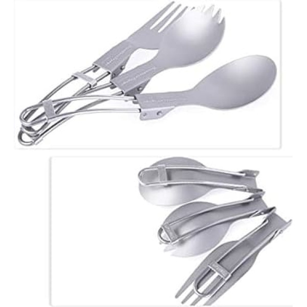 ● Ultra light and portable: spoon: with size (L) 150 x (W) 40 mm, folding size: (L) 80 x (D) 38 mm; approx. 18g Spork: with size (L) 150 x (W) 40 mm; folding size: (L) 80 x (D) 38 mm; approx. 18 g. Fork: with size (L) 165 x (W) 26 mm, folding size: (L) 98 x (D) 26 mm; approx. 15g chopsticks: use size: (L) 198 x (D) 6.5 mm, folding size: (L) 80 x (D) 6.5 mm, approx. 17g A set of practical cutlery for family trips. ● Material: Made of 99% titanium, hygiene and health guaranteed. Never rust and durable, corrosion protection by acid and alkali. ● Folding handle: Made of stainless steel, foldable to 8 cm, ultra-light and portable, space-saving outdoors. The sticks are flexible, the maximum length is 19.8 cm, the minimum length is 8 cm, it is long enough for adults when using and it is short enough to save more space when storing. ● The tip of the chopsticks is non-slip to increase friction. This makes it easier to pick up food. The chopsticks can be easily divided into three separate sections. Each section is very easy to clean and leaves no dirt. ● Perfect for travel, camping and daily use: this harness is easy to use and handle. It is not only suitable for camping, as it comes with a bag that makes it easier to carry when travelling, in the office and in the office makes you relaxed. › See more product details