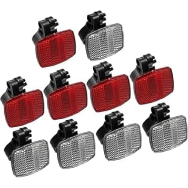 Assembly: the front rear bicycle reflectors are made of plastic material, which is sturdy and durable, and can be used for a long time. Advantage The bike safety warning reflectors can add visibility in dark night, making your riding much safer at night. Features: The bicycle front and rear reflectors are easy for you to install, you just need to mount the reflectors on the handlebar or seat post, only a few minutes can complete the installation. USEFUL - Add visibility in dark light. Details: Material: Plastic; Size: 5.5 x 3.9 cm (L x W); Front Mounts on Handlebars: Tube Size: 22.2-27 mm, Rear Brackets on Seatpost: Tube Size: 29.5-33 mm; Color: Red and White › See more product details; Product description Special features: Waterproof Performance The plastic material makes the front and rear reflectors of the bike with nice waterproof performance, which can be applied in rainy days. Sturdy and Firm The plastic material is sturdy and firm, so the bicycle safety warning reflector is not easy to break and deform, ensuring that it can be used for a long time. Mounting Bracket The bracket ensures that the bike reflector is fixed stably, which is not easy to fall off. Technical data: Material: Plastic Size: 5.5 x 3.9 cm (L x W). Front Handlebar Mount: Tube Size: 22.2-27mm Rear Mounts to Seat Post: Tube Size: 29.5-33mm Color: red, white Package includes: 5 x Red Bicycle Rear Reflectors 5 x White Bicycle Front Reflectors 10 x Fuse Clip (two different calibers) Notes: Please allow a little error due to manual measurement. The color may exist slight difference due to different displays.; Product description Special features: Waterproof Performance The plastic material makes the front and rear reflectors of the bike with nice waterproof performance, which can be applied in rainy days. Sturdy and Firm The plastic material is sturdy and firm, so the bicycle safety warning reflector is not easy to break and deform, ensuring that it can be used for a long time. Mounting Bracket The bracket ensures that the bike reflector is fixed stably, which is not easy to fall off. Technical data: Material: Plastic Size: 5.5 x 3.9 cm (L x W). Front Handlebar Mount: Tube Size: 22.2-27mm Rear Mounts to Seat Post: Tube Size: 29.5-33mm Color: red, white Package includes: 5 x Red Bicycle Rear Reflectors 5 x White Bicycle Front Reflectors 10 x Fuse Clip (two different calibers) Notes: Please allow a little error due to manual measurement. The color may exist slight difference due to different displays.; Special features: Waterproof Performance The plastic material makes the front and rear reflectors of the bike with nice waterproof performance, which can be applied in rainy days. Sturdy and Firm The plastic material is sturdy and firm, so the bicycle safety warning reflector is not easy to break and deform, ensuring that it can be used for a long time. Mounting Bracket The bracket ensures that the bike reflector is fixed stably, which is not easy to fall off. Technical data: Material: Plastic Size: 5.5 x 3.9 cm (L x W). Front Handlebar Mount: Tube Size: 22.2-27mm Rear Mounts to Seat Post: Tube Size: 29.5-33mm Color: red, white Package includes: 5 x Red Bicycle Rear Reflectors 5 x White Bicycle Front Reflectors 10 x Fuse Clip (two different calibers) Notes: Please allow a little error due to manual measurement. The color may exist slight difference due to different displays.