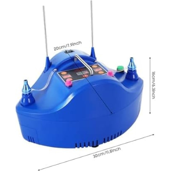With a powerful 1200 W power, this electric balloon pump can quickly provide enough air flow for the balloon for high-speed inflation, save your valuable time. With the touch switch, it is easy and convenient to use. Simply point the small tip to the nozzle of the balloon and press lightly to automatically inflate the balloon, easy and convenient. The balloon pump is equipped with four adjustable nozzles that can inflate four balloons at the same time, which greatly improves the efficiency of inflation and is particularly suitable for large parties and occasions. The handle is designed so that the user can grip and carry it well. It is also equipped with a storage bag, when not in use, you can put the product in the bag to avoid damage, convenient storage and storage. This electric balloon pump has a time setting and a function to adjust the balloon capacity, which allows the user to personalise the settings according to their own needs to ensure that the balloons are inflated with just the right amount of air and at the right time. › See more product details; Product description Detailed information: Specification Power: DC power Voltage: 220 V. Pressure: 3.5 PSI Wind: 500 L/min. Size: (H x W x H) 30 x 20 x 16 cm / 11.8 x 7.9 x 16.3 inches. Power cable length: 1.8 m. Current: 4A. Power: 1200 W. Package includes: 1 x inflator.; Product description Detailed information: Specification Power: DC power Voltage: 220 V. Pressure: 3.5 PSI Wind: 500 L/min. Size: (H x W x H) 30 x 20 x 16 cm / 11.8 x 7.9 x 16.3 inches. Power cable length: 1.8 m. Current: 4A. Power: 1200 W. Package includes: 1 x inflator.; Detailed information: Specification Power: DC power Voltage: 220 V. Pressure: 3.5 PSI Wind: 500 L/min. Size: (H x W x H) 30 x 20 x 16 cm / 11.8 x 7.9 x 16.3 inches. Power cable length: 1.8 m. Current: 4A. Power: 1200 W. Package includes: 1 x inflator.