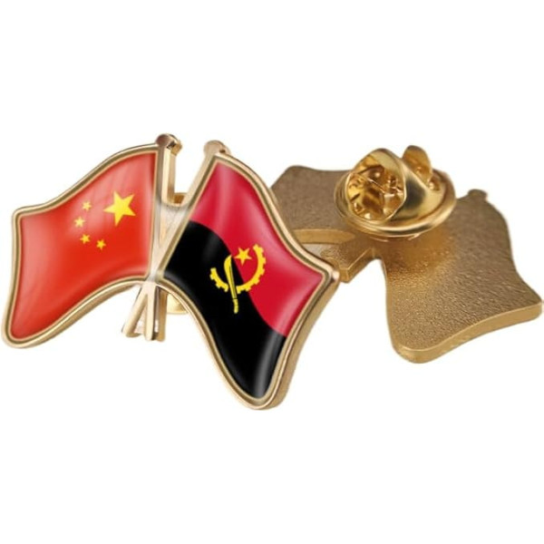 Lapel Pin with the Friendship Flag of China and Angola Geometric Patriotic Badges Art Novelty Brooch Card Pin Creative Jewellery for Women and Men Party Travel
