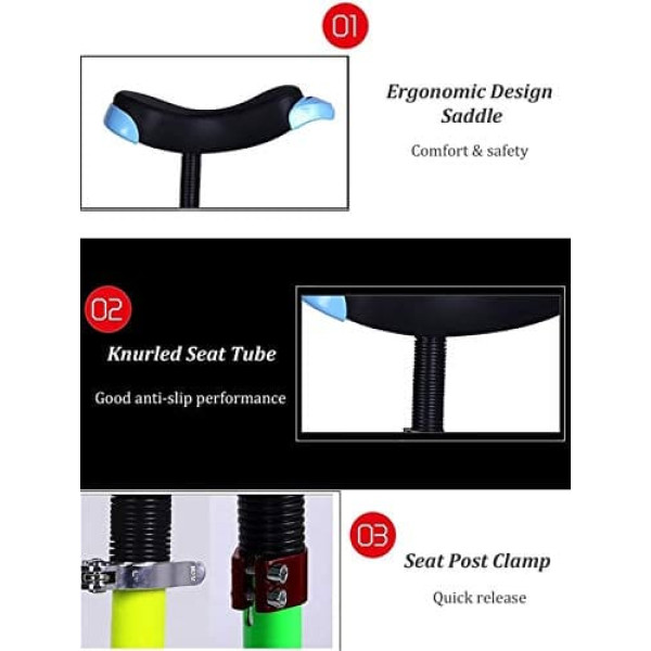 【Durable Frame】: Unicycles are an ideal first unicycle for teenagers and adults, non-slip design outer tires and pedals to prevent slipping. Extra thick aluminum alloy frame and strong manganese steel frame for long time use. Colour: black, white, green, blue 【16/18/20 inch wheel】: this unicycle for children and adults with high load capacity, can load up to 150 kg, suitable height over 1.25 m / 47.2 inches SUITABLE FOR MOST PEOPLE Ideal for beginners and professionals, especially for children and teenagers to practice riding and improve balance. Ideal for sports, training and leisure activities 【Easy to install】: Lightweight and durable unicycle is easy to install. Quick release seatpost clamp and a wrench comes with the unicycle, the installation is completed in minutes and ready Various occasions: the unicycle is small and easy to store. Allow you to enter public places, buses, trains. This is a fun gift, Christmas gift, birthday gift for children and friends › See more product details; Product description Benefits of unicycle exercise: Teens grow bigger, regular leg exercises can promote bone growth. Obesity and good body shape; the action of riding makes the lower limbs exercise, and the proportion of the body makes the lower limbs slimmer. Hold on to a unicycle and lose weight. Ergonomic saddle with handle and bumper for a safe and comfortable ride. For beginners and professionals, men and women. Designed according to somatology and movement features. Steel + Rubber + Plastic Black, white, green, blue. Excellent manganese steel, standard unicycle frame. Height-adjustable saddle. Non-slip, uneven anti-slip pedals increase friction and effectively prevent slipping Heavy Manganese Steel Damper Bearing Leakage protection butyl tyres. Package Includes: 1 x Wheel, 1 x Frame, 1 x Saddle, 2 x Pedals, 1 x Wrench, 1 x User Manual (may not be in English). English language not guaranteed). Suitable for children under 12 years. should you drive under the instructions for safety or accompany your teachers. And the best place for your workout is a back deck or baseball field with chain link fence. Choose a grassy area with firm, flat dirt and you can hold onto the fence. When you are doing sports for the first time, please wear protective equipment and train with other people.; Product description Benefits of unicycle exercise: Teens grow bigger, regular leg exercises can promote bone growth. Obesity and good body shape; the action of riding makes the lower limbs exercise, and the proportion of the body makes the lower limbs slimmer. Hold on to a unicycle and lose weight. Ergonomic saddle with handle and bumper for a safe and comfortable ride. For beginners and professionals, men and women. Designed according to somatology and movement features. Steel + Rubber + Plastic Black, white, green, blue. Excellent manganese steel, standard unicycle frame. Height-adjustable saddle. Non-slip, uneven anti-slip pedals increase friction and effectively prevent slipping Heavy Manganese Steel Damper Bearing Leakage protection butyl tyres. Package Includes: 1 x Wheel, 1 x Frame, 1 x Saddle, 2 x Pedals, 1 x Wrench, 1 x User Manual (may not be in English). English language not guaranteed). Suitable for children under 12 years. should you drive under the instructions for safety or accompany your teachers. And the best place for your workout is a back deck or baseball field with chain link fence. Choose a grassy area with firm, flat dirt and you can hold onto the fence. When you are doing sports for the first time, please wear protective equipment and train with other people.; Benefits of unicycle exercise: Teens grow bigger, regular leg exercises can promote bone growth. Obesity and good body shape; the action of riding makes the lower limbs exercise, and the proportion of the body makes the lower limbs slimmer. Hold on to a unicycle and lose weight. Ergonomic saddle with handle and bumper for a safe and comfortable ride. For beginners and professionals, men and women. Designed according to somatology and movement features. Steel + Rubber + Plastic Black, white, green, blue. Excellent manganese steel, standard unicycle frame. Height-adjustable saddle. Non-slip, uneven anti-slip pedals increase friction and effectively prevent slipping Heavy Manganese Steel Damper Bearing Leakage protection butyl tyres. Package Includes: 1 x Wheel, 1 x Frame, 1 x Saddle, 2 x Pedals, 1 x Wrench, 1 x User Manual (may not be in English). English language not guaranteed). Suitable for children under 12 years. should you drive under the instructions for safety or accompany your teachers. And the best place for your workout is a back deck or baseball field with chain link fence. Choose a grassy area with firm, flat dirt and you can hold onto the fence. When you are doing sports for the first time, please wear protective equipment and train with other people.