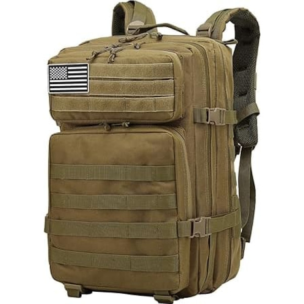 45L LARGE CAPACITY - Tactical military backpack measures 50cm x 30cm x 30cm and a reasonable capacity of 45L can accommodate all your essential gear. The large multi-layer inner compartments can hold a large amount of outdoor activities equipment and also meet your daily travel needs. Large Velcro area, you can attach any patch you want. One American Flag Patch (can be removed) High-quality materials: the military backpack is made of 900D polyester, the tactical attack backpack is reinforced and double stitched at all tension points. It is durable and robust and our special coating makes our training backpack waterproof and scratch resistant. MOLLE SYSTEM The laser cut MOLLE strap design makes this tactical backpack stand out. Uses a double layer laser cut MOLLE suspension system that can fit all kinds of tactical bags. It is designed to be used in conjunction with other devices, such as kettle bag, walkie talkie bag, first aid bag, and flashlight bag. MULTIPLE COMPARTMENTS - Designed with 5 compartments to store more things: two front pockets for small items, two large compartments with integrated zipper pocket and mesh pocket for large and important essentials, exclusive compartment for laptop or device (17 inch), military army. The backpack opens and opens 180 degrees for easy packing or unpacking. COMFORT & FUNCTION This sports backpack features double stitched padded shoulder straps and a mesh back panel for comfort, ventilation and durability while traveling. High quality two-way zipper, all compartments have two-way openings for easy access. Easily adjustable straps to prevent the belt from slipping through the buckles. Hundreds of uses, also as a storm backpack, survival backpack, military backpack and hunting backpack. › See more product details; Product description Military Tactical Backpack; Product description Military Tactical Backpack; Military Tactical Backpack
