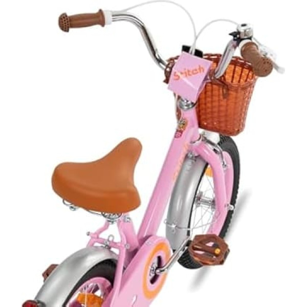 STITCH Vintage 12 Inch Children's Bicycle for 2-4 Years Girls, Children's Bicycle with Front Basket and Stabilisers, Pink