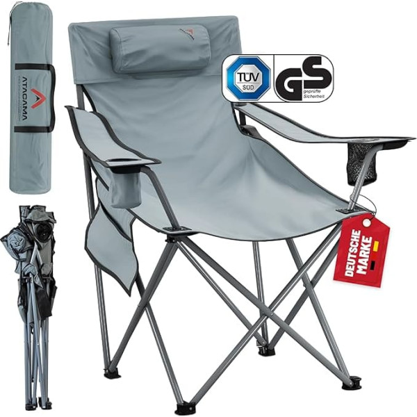 ULTRA LIGHTWEIGHT & PORTABLE Our folding camping chair is the ultimate lightweight and foldable for maximum portability. Easy to carry and quick to set up - the ideal companion for any adventure. HEAVY DUTY CONSTRUCTION This camping chair is designed for durability and can effortlessly support up to 330 lbs. The structure guarantees stability and safety with every use. SUPREME COMFORT With a comfortable seat, our camping chair is designed for maximum comfort, perfect for hours of outdoor relaxation. Enjoy nature in complete comfort and relaxation. VERSATILE FOLDING CHAIR Whether as a fishing chair fishing chair, folding camping chair or for other outdoor activities, this camping chair adapts to your needs and offers versatile uses. An all-rounder for your outdoor adventures. STYLISH DESIGN Our folding camping chair impresses not only with its function, but also with its attractive design that appeals to any outdoor lover. Rely on style and comfort on your camping trips. › See more product details