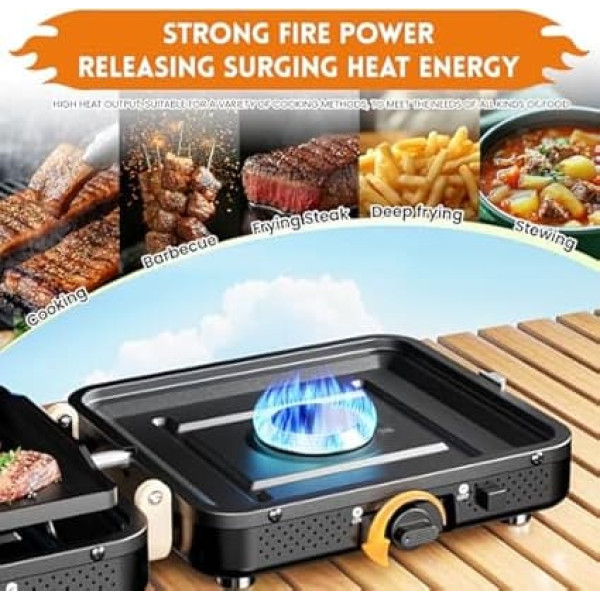 Portable & Foldable Design The Affluent propane two burner camping stove, complete with grill and storage bag, is a must have outdoor use. It is foldable, making it easy to store in your car or backpack, perfect for camping and barbecuing. Despite its compact size, it does not save on functionality. With two adjustable burners, you can cook multiple dishes at the same time. The piezo ignition ensures a quick and hassle-free start, making it a reliable choice for all your outdoor cooking needs. POWERFUL & PRECISION BURNERS This propane gas stove for camping features two powerful adjustable burners. Whether you're simmering a sauce or boiling water quickly, these burners handle it well. As a high-performance camping stove propane, it offers consistent heat output. The user-friendly control buttons allow you to precisely regulate the flame. Whether you are a professional camper or a beginner, this stove will meet your cooking needs during your camping trips. BUILT-IN GRILL FOR VERSATILITY 2 burner propane camping stove is characterized by its built in grill. It transforms into a full-fledged outdoor cooking station. As a propane camping stove, you can grill burgers, hot dogs and more. The grill surface distributes heat evenly for perfect grill marks. IT'S A MUST HAVE - Addition to your camping gear, offering cooking variety for any camping stove propane lover. User-friendly functions: The AFFLUENT camping stove has been specially designed for users and features a piezo ignition system, eliminating the need for matches. The easy to carry handle allows for smooth movement around the campsite. With two adjustable burners, you can customise your cooking. It is perfect for families, groups or solo campers who want a stress-free outdoor cooking experience. It is an excellent camping stove propane option. DURABLE & RELIABLE CONSTRUCTION The AFFLUENT 2 - Propane Camping Stove is made from high quality materials. It can withstand the harsh conditions of outdoor use. Its sturdy construction ensures stability when cooking, even on uneven ground. This portable camping stove is a camping stove propane you can trust. It guarantees you pleasant outdoor cooking experiences on every trip. › See more product details; Product description The AFFLUENT Propane 2 Burner Camping Stove with Grill is a premium choice for outdoor cooking enthusiasts. Its foldable design makes it easy to carry, fits perfectly in your boot or backpack. Two powerful, adjustable burners offer versatility, whether you're simmering a sauce or grilling burgers. The built-in grill distributes heat evenly and complements its cooking options. With the piezo ignition, starting is a breeze, eliminating the need for matches. An easy to carry handle allows for effortless movement around the campsite. Crafted from high quality materials, this stove is durable and sturdy, even on uneven surfaces. Whether solo campers, with the family or in a group, this propane camping stove and camping stove propane is your reliable companion for stress-free and enjoyable outdoor cooking.; Product description The AFFLUENT Propane 2 Burner Camping Stove with Grill is a premium choice for outdoor cooking enthusiasts. Its foldable design makes it easy to carry, fits perfectly in your boot or backpack. Two powerful, adjustable burners offer versatility, whether you're simmering a sauce or grilling burgers. The built-in grill distributes heat evenly and complements its cooking options. With the piezo ignition, starting is a breeze, eliminating the need for matches. An easy to carry handle allows for effortless movement around the campsite. Crafted from high quality materials, this stove is durable and sturdy, even on uneven surfaces. Whether solo campers, with the family or in a group, this propane camping stove and camping stove propane is your reliable companion for stress-free and enjoyable outdoor cooking.; The AFFLUENT Propane 2 Burner Camping Stove with Grill is a premium choice for outdoor cooking enthusiasts. Its foldable design makes it easy to carry, fits perfectly in your boot or backpack. Two powerful, adjustable burners offer versatility, whether you're simmering a sauce or grilling burgers. The built-in grill distributes heat evenly and complements its cooking options. With the piezo ignition, starting is a breeze, eliminating the need for matches. An easy to carry handle allows for effortless movement around the campsite. Crafted from high quality materials, this stove is durable and sturdy, even on uneven surfaces. Whether solo campers, with the family or in a group, this propane camping stove and camping stove propane is your reliable companion for stress-free and enjoyable outdoor cooking.