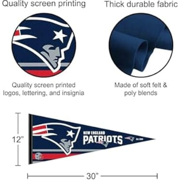 12\; Product description Our team pennant is a great way to show your league allegiance in your sports room, game room, office, bedroom, or any room by showing on any wall. These flags measure a full size of 12 x 30 inches, are made of felt blend fabric and are printed on one side with the insignia and logos as shown. Each banner is officially licensed by the selected team that secures up-to-date badges, wordmarks and authentic colors. These pennants also include a pennant sleeve on the left side which can be used to insert a bunting stick if desired.; Product description Our team pennant is a great way to show your league allegiance in your sports room, game room, office, bedroom, or any room by showing on any wall. These flags measure a full size of 12 x 30 inches, are made of felt blend fabric and are printed on one side with the insignia and logos as shown. Each banner is officially licensed by the selected team that secures up-to-date badges, wordmarks and authentic colors. These pennants also include a pennant sleeve on the left side which can be used to insert a bunting stick if desired.; Our team pennant is a great way to show your league allegiance in your sports room, game room, office, bedroom, or any room by showing on any wall. These flags measure a full size of 12 x 30 inches, are made of felt blend fabric and are printed on one side with the insignia and logos as shown. Each banner is officially licensed by the selected team that secures up-to-date badges, wordmarks and authentic colors. These pennants also include a pennant sleeve on the left side which can be used to insert a bunting stick if desired.