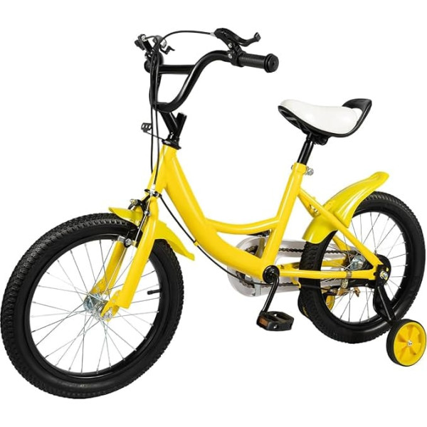 Designed for 3.28-4.42 ft in height children: short range brake lever (0.98 inches), the height of the seat (22.04 inches to 26.37 inches) and the handlebar (27.75 inches to 29.52 inches) can be adjusted, the bike grows with your little one. Elastic, shock-absorbing rubber tyres and 2 training wheels with flashing light form a stabilising triangular structure. The non-slip tyres also provide excellent grip and stability and ensure safe cycling. Selected materials: the frame of children's bicycles is made of high-quality carbon steel, combined with plastic splash and protective welds, can reach a maximum load capacity of 110 pounds. The steel bicycle chain and high-quality plastic chain are corrosion resistant and wear-resistant and provide good long-term performance. Comfortable Fit The PU surface and sponge filled cushion can apply force evenly when cycling, and the smooth curve design conforms to ergonomics, making your kids feel comfortable for a long time. Double brake mod: double brakes on the front and back of the bike, which make the braking process safer and effectively improve safety. Lightweight and compact design: It measures 39.3 inches (length) and weighs 11 lbs. You can place it in the garage, trunk and other small places without taking up much space for convenient storage when not in use. › See more product details