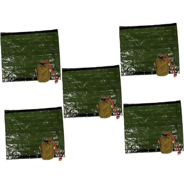 Emergency blanket: it helps you protect yourself from the cold air and ensures a warm and comfortable rest when camping in winter. emergency blankets Emergency supplies: workmanship, durable and robust, wear-resistant or tear-resistant, you deserve one, an emergency rescue blanket Survival sleeping tent: made of good and robust material, the emergency blanket is durable, lightweight and easy to carry, outdoor camping accessories Emergency sleeping bag: the emergency sleeping bag can be used not only as a survival sleeping bag, but also as a survival sleeping bag and as a hiking heat blanket Emergency bag: the survival sleeping bag is multifunctional and can also be used as a survival blanket and sleeping bag, sleeping bags for adults › See more product details; Product description Box contents: 5 x survival sleeping bag, 5 x storage bag. Features - Size: 213.00 x 91.00 x 0.10 cm/83.71 x 35.76 x 0.04 in camping sleeping bag. - Material: PE, rescue blankets made of aluminium foil. - Colour: green emergency sleeping bag. - Essential for outdoor activities, adventures, expeditions, tourism and more; helpful in all outdoor emergency situations. - It helps you to sufficiently insulate from the cold air and ensures a warm and comfortable rest when camping in the winter emergency blanket. - Workmanship, durable and sturdy, not easy to wear or tear, you deserve a rescue blanket. - The survival sleeping bag is a perfect, necessary activity and is suitable for hiking, camping, cycling, etc. as survival equipment. - Can be used as an emergency blanket, survival tent, sleeping bag, picnic blanket, essential backpack item for climbers and as an emergency thermal blanket for hikers. Product Information Emergency supplies: this emergency sleeping bag can keep you warm, a tool for personal, emergencies, etc. Camping blanket. After an accident, the first aid sleeping bag can be used to cover the person and prevent a strong temperature drop. Emergency blanket. The emergency sleeping bag is mainly used to prevent hypothermia; Product description Box contents: 5 x survival sleeping bag, 5 x storage bag. Features - Size: 213.00 x 91.00 x 0.10 cm/83.71 x 35.76 x 0.04 in camping sleeping bag. - Material: PE, rescue blankets made of aluminium foil. - Colour: green emergency sleeping bag. - Essential for outdoor activities, adventures, expeditions, tourism and more; helpful in all outdoor emergency situations. - It helps you to sufficiently insulate from the cold air and ensures a warm and comfortable rest when camping in the winter emergency blanket. - Workmanship, durable and sturdy, not easy to wear or tear, you deserve a rescue blanket. - The survival sleeping bag is a perfect, necessary activity and is suitable for hiking, camping, cycling, etc. as survival equipment. - Can be used as an emergency blanket, survival tent, sleeping bag, picnic blanket, essential backpack item for climbers and as an emergency thermal blanket for hikers. Product Information Emergency supplies: this emergency sleeping bag can keep you warm, a tool for personal, emergencies, etc. Camping blanket. After an accident, the first aid sleeping bag can be used to cover the person and prevent a strong temperature drop. Emergency blanket. The emergency sleeping bag is mainly used to prevent hypothermia; Box contents: 5 x survival sleeping bag, 5 x storage bag. Features - Size: 213.00 x 91.00 x 0.10 cm/83.71 x 35.76 x 0.04 in camping sleeping bag. - Material: PE, rescue blankets made of aluminium foil. - Colour: green emergency sleeping bag. - Essential for outdoor activities, adventures, expeditions, tourism and more; helpful in all outdoor emergency situations. - It helps you to sufficiently insulate from the cold air and ensures a warm and comfortable rest when camping in the winter emergency blanket. - Workmanship, durable and sturdy, not easy to wear or tear, you deserve a rescue blanket. - The survival sleeping bag is a perfect, necessary activity and is suitable for hiking, camping, cycling, etc. as survival equipment. - Can be used as an emergency blanket, survival tent, sleeping bag, picnic blanket, essential backpack item for climbers and as an emergency thermal blanket for hikers. Product Information Emergency supplies: this emergency sleeping bag can keep you warm, a tool for personal, emergencies, etc. Camping blanket. After an accident, the first aid sleeping bag can be used to cover the person and prevent a strong temperature drop. Emergency blanket. The emergency sleeping bag is mainly used to prevent hypothermia