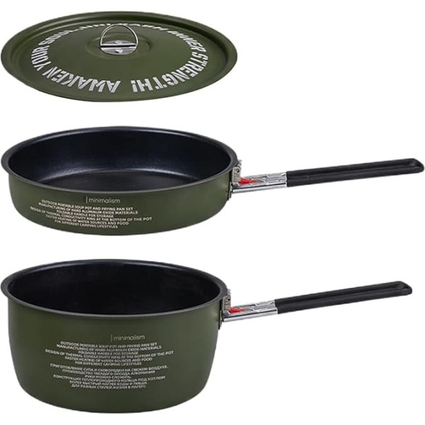 Optimiertes Kochzubehör: Mit unter 600g Gesamtgewicht bietet dieses Set optimale Tragbarkeit durch präzise Gewichtskontrolle – ideal für Outdoor-Fans, die praktische und effiziente Kochausrüstung suchen. Outdoor-Taugliches Design: Speziell für Campingkocher entwickelt mit universeller Wärmequellen-Anpassung und Flachboden für stabilen Stand, vereinfacht Kocherlebnisse in jeder Naturumgebung Funktionales Set: Kombiniert 2-Liter-und 1,2-Liter-Pfanne mit breitem Boden für optimale Wärmeeffizienz. Die tiefere form hält Inhalte sicher und modernisiert das Kochen beim Camping. Kompakte Aufbewahrung: Die verschachtelbare Bauweise und abnehmbarer Griff gewährleisten sichere Handhabung bei minimalem Platzbedarf. Perfekt für ordentliches Packen auf Reisen. Zuverlässig & Kratzfest: Leichtes Material mit Aluminium-Schmiedetechnik garantiert gleichmäßige Wärmeverteilung und langfristigen Kratzschutz für Ihr Camping-Kochgeschirr. › See more product details; Product description Mit einem abnehmbaren Griff und stapelbaren Komponenten bietet dieses Camping-Kochgeschirr eine kompakte Lösung für Outdoor-Enthusiasten, die zuverlässige Werkzeuge für Eintopf-, Brat- und Mahlzeitvorbereitung bei Aktivitäten wie Wandern, Trekking, Wohnmobilreisen oder Strandausflügen suchen. Ausgestattet mit einer gleichmäßigen Heiztechnologie eignet es sich für Familien, Paare und Einzelpersonen auf Jagd- oder Überlebensausflügen.Spezifikationen:Material: Hart anodiertes AluminiumKapazität:Suppentopf: 2L, Pfanne: 1,2lProduktgewicht:Suppentopf mit Deckel: ca. 340 g, Pfanne: ungefähr 210 g, Gesamtgewicht: 550 gProduktgröße: Wie im Bild gezeigtPackliste:1 Set * Camping Pot und PanNotiz:Aufgrund unterschiedlicher Beleuchtungs- und Bildschirmeinstellungen kann sich die Elementfarbe leicht vom Bild unterscheiden.Aufgrund unterschiedlicher manueller Messungen lassen Sie bitte eine Größe von 1-2 cm in der Größe zu.; Product description Mit einem abnehmbaren Griff und stapelbaren Komponenten bietet dieses Camping-Kochgeschirr eine kompakte Lösung für Outdoor-Enthusiasten, die zuverlässige Werkzeuge für Eintopf-, Brat- und Mahlzeitvorbereitung bei Aktivitäten wie Wandern, Trekking, Wohnmobilreisen oder Strandausflügen suchen. Ausgestattet mit einer gleichmäßigen Heiztechnologie eignet es sich für Familien, Paare und Einzelpersonen auf Jagd- oder Überlebensausflügen.Spezifikationen:Material: Hart anodiertes AluminiumKapazität:Suppentopf: 2L, Pfanne: 1,2lProduktgewicht:Suppentopf mit Deckel: ca. 340 g, Pfanne: ungefähr 210 g, Gesamtgewicht: 550 gProduktgröße: Wie im Bild gezeigtPackliste:1 Set * Camping Pot und PanNotiz:Aufgrund unterschiedlicher Beleuchtungs- und Bildschirmeinstellungen kann sich die Elementfarbe leicht vom Bild unterscheiden.Aufgrund unterschiedlicher manueller Messungen lassen Sie bitte eine Größe von 1-2 cm in der Größe zu.; Mit einem abnehmbaren Griff und stapelbaren Komponenten bietet dieses Camping-Kochgeschirr eine kompakte Lösung für Outdoor-Enthusiasten, die zuverlässige Werkzeuge für Eintopf-, Brat- und Mahlzeitvorbereitung bei Aktivitäten wie Wandern, Trekking, Wohnmobilreisen oder Strandausflügen suchen. Ausgestattet mit einer gleichmäßigen Heiztechnologie eignet es sich für Familien, Paare und Einzelpersonen auf Jagd- oder Überlebensausflügen.Spezifikationen:Material: Hart anodiertes AluminiumKapazität:Suppentopf: 2L, Pfanne: 1,2lProduktgewicht:Suppentopf mit Deckel: ca. 340 g, Pfanne: ungefähr 210 g, Gesamtgewicht: 550 gProduktgröße: Wie im Bild gezeigtPackliste:1 Set * Camping Pot und PanNotiz:Aufgrund unterschiedlicher Beleuchtungs- und Bildschirmeinstellungen kann sich die Elementfarbe leicht vom Bild unterscheiden.Aufgrund unterschiedlicher manueller Messungen lassen Sie bitte eine Größe von 1-2 cm in der Größe zu.