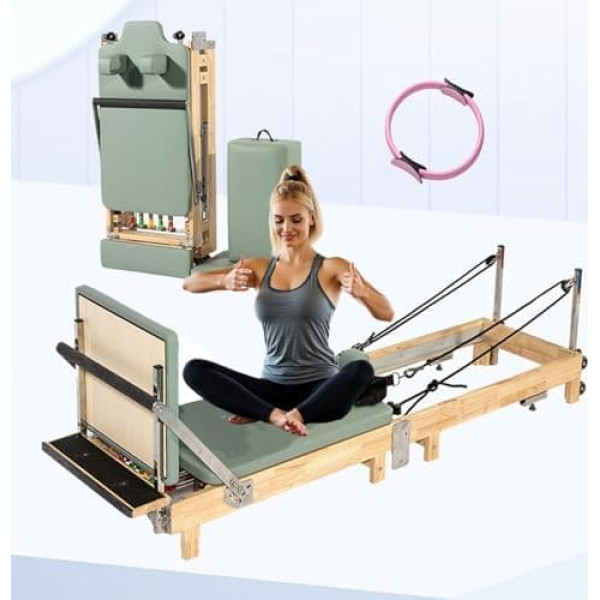 Pilates Reformer, faltbar, aus Holz für das Fitnessstudio zu Hause – kompaktes, verstellbares Krafttrainingsgerät mit gepolstertem Sprungbrett (2380 x 950 x 240 mm)