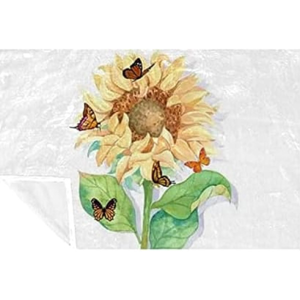 VAPOKF Fliegen-Schmetterling auf Sonnenblumen-Drucken, weich, warm, gemütlich, Überwurf für Bett, Couch, Sofa, Picknick, Camping, Strand, 150 x 100 cm