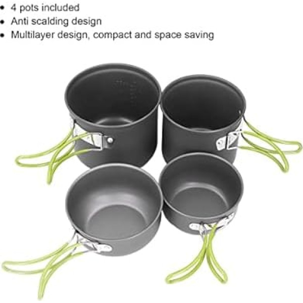 Culnflun 4PCS Camping Pot Kit Multi -Layers Anti -Skalding Design Camping Cookware Mess Kit mit Klappgriff zum Wandern im Freien