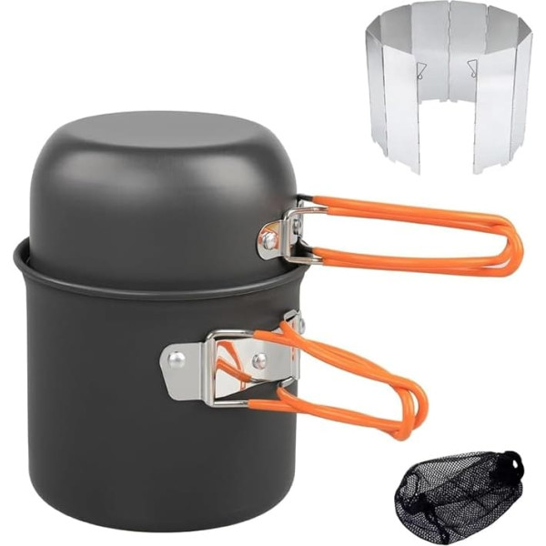 COMPLETE CAMPING COOKWARE Our set includes 1 large pot, 1 small pot and a free windshield with 10 plates. In addition, it comes with storage bags for cutlery and pots. Perfect for outdoor camping adventures, ideal for 1-2 people. PREMIUM MATERIALS Made of safe and durable hard anodized aluminum, our pots and pans heat up quickly and evenly. The cookware surface is coated with Teflon non-stick coating to ensure easy cleaning and lasting durability. For added safety and durability, we have included high-quality stainless steel folding cutlery. 【Heat Resistant Handle】Our cookware set features insulated plastic handles on the pots and pans to ensure your hands are protected from heat during cooking. In addition, each stainless steel cup comes with a silicone protective sleeve for improved heat insulation and slip resistance. Lightweight and portable: Made of lightweight and durable aluminium alloy, our camping cookware set is easy to carry and carry. The folding handles on pots, pans and cutlery save space and allow for convenient storage. After use, the entire set stacks neatly in the mesh bag, making it perfect for outdoor activities. Versatile: Designed for camping enthusiasts, backpackers and picnic lovers, our camping cookware set is versatile and practical. Whether you are cooking for yourself or sharing a meal with friends and family, our high-quality materials and portable design ensure that everyone can enjoy outdoor cooking. › See more product details; Product description Set Configuration:Outdoor Pot SetMaterial:AluminumFunction:UltralightModel:DS-101Weight:232gApplicable number of people:1-2 peopleColor: green, orangeSize:16*11*11cmComes with a free windshield; Product description Set Configuration:Outdoor Pot SetMaterial:AluminumFunction:UltralightModel:DS-101Weight:232gApplicable number of people:1-2 peopleColor: green, orangeSize:16*11*11cmComes with a free windshield; Set Configuration:Outdoor Pot SetMaterial:AluminumFunction:UltralightModel:DS-101Weight:232gApplicable number of people:1-2 peopleColor: green, orangeSize:16*11*11cmComes with a free windshield