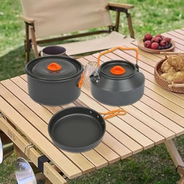 High-quality material: made of high-quality aluminium alloy with ABS non-stick coating to ensure fast heat transfer as well as high temperature and wear resistance EFFORTLESS HANDLING Featuring a heat resistant design to ensure a secure and portable grip with a portable handle that automatically recovers for optimized use Improved casting efficiency: streamlined radiation design results in improved precision and less spillage, guaranteeing a smoother and more convenient experiential goods experience EFFORTLESS STORAGE Appreciate efficient space saving storage with this camping cooking set that provides a foldable handle and makes it easy to store and optimize your outdoor cooking expeditions SUITABLE FOR MANY OCCASIONS Effortlessly create a range of delicious dishes with this camping cooking set, perfect for picnics, beach trips and outdoor adventures › See more product details; Product description Improve your camping experience with our cooking set for camping utensils. Made of high quality material with a portable handle for easy use. The smooth output design makes it perfect for making tea or boiling water. Specification: Name: camping cooking set. Size of the saucepan: medium (2 litres) approx. 18 x 9 cm / 7.09 x 3.54 inches, large (3L) approx. 19 x 11.5 cm / 7.48 x 4.53 inches. Kettle size: Medium (1.1L) approx. 15 x 8.5 cm / 5.91 x 3.35 inches, large (1.6 l) approx. 16 x 10 cm / 6.3 x 3.94 inches. Size of the roast: medium (0.9 litres) approx. 19 x 4 cm / 7.48 x 1.57 inches, large (1.2 l) approx. 20 x 5 cm / 7.87 x 1.97 inches. Weight: A approx. 630 g, B approx. 800 g. Material: aluminium alloy, ABS. Product list: A: 1 x medium saucepan, 1 x medium-sized, 1 x 1.1 litre kettle, 1 x rubber spatula, 1 x cotton wash, 1 x soup spoon, 1 x bowl. Or B: 1 x large cooking pot, 1 x large roast, 1 x 1.6 litre kettle, 1 x rice spoon, 1 x soup spoon, 3 x bowls. Note: Due to different lighting and screen settings, the colour of the item may differ slightly from the picture. Due to different manual measurement, please allow a size of 1-2 cm in size.; Product description Improve your camping experience with our cooking set for camping utensils. Made of high quality material with a portable handle for easy use. The smooth output design makes it perfect for making tea or boiling water. Specification: Name: camping cooking set. Size of the saucepan: medium (2 litres) approx. 18 x 9 cm / 7.09 x 3.54 inches, large (3L) approx. 19 x 11.5 cm / 7.48 x 4.53 inches. Kettle size: Medium (1.1L) approx. 15 x 8.5 cm / 5.91 x 3.35 inches, large (1.6 l) approx. 16 x 10 cm / 6.3 x 3.94 inches. Size of the roast: medium (0.9 litres) approx. 19 x 4 cm / 7.48 x 1.57 inches, large (1.2 l) approx. 20 x 5 cm / 7.87 x 1.97 inches. Weight: A approx. 630 g, B approx. 800 g. Material: aluminium alloy, ABS. Product list: A: 1 x medium saucepan, 1 x medium-sized, 1 x 1.1 litre kettle, 1 x rubber spatula, 1 x cotton wash, 1 x soup spoon, 1 x bowl. Or B: 1 x large cooking pot, 1 x large roast, 1 x 1.6 litre kettle, 1 x rice spoon, 1 x soup spoon, 3 x bowls. Note: Due to different lighting and screen settings, the colour of the item may differ slightly from the picture. Due to different manual measurement, please allow a size of 1-2 cm in size.; Improve your camping experience with our cooking set for camping utensils. Made of high quality material with a portable handle for easy use. The smooth output design makes it perfect for making tea or boiling water. Specification: Name: camping cooking set. Size of the saucepan: medium (2 litres) approx. 18 x 9 cm / 7.09 x 3.54 inches, large (3L) approx. 19 x 11.5 cm / 7.48 x 4.53 inches. Kettle size: Medium (1.1L) approx. 15 x 8.5 cm / 5.91 x 3.35 inches, large (1.6 l) approx. 16 x 10 cm / 6.3 x 3.94 inches. Size of the roast: medium (0.9 litres) approx. 19 x 4 cm / 7.48 x 1.57 inches, large (1.2 l) approx. 20 x 5 cm / 7.87 x 1.97 inches. Weight: A approx. 630 g, B approx. 800 g. Material: aluminium alloy, ABS. Product list: A: 1 x medium saucepan, 1 x medium-sized, 1 x 1.1 litre kettle, 1 x rubber spatula, 1 x cotton wash, 1 x soup spoon, 1 x bowl. Or B: 1 x large cooking pot, 1 x large roast, 1 x 1.6 litre kettle, 1 x rice spoon, 1 x soup spoon, 3 x bowls. Note: Due to different lighting and screen settings, the colour of the item may differ slightly from the picture. Due to different manual measurement, please allow a size of 1-2 cm in size.