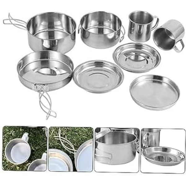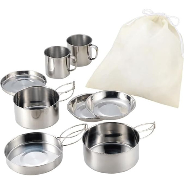 Portable cooking combinations - With all the necessary utensils in the kitchen, you can easily enjoy outdoor cooking, outdoor camping cookware Portable Cookware Set - The pot and frying pan are equipped with folding handles that fold up for easy storage, camping cooking pan Children's accessories - The stainless steel camping cookware set includes a stewpot, frying pan, plates and cups and versatile Outdoor cooking pan - high quality and that will serve you for many years, camping pot Practical camping cookware - With portable design, the cookware can be conveniently stored when not in use, camping pot made of stainless steel › See more product details